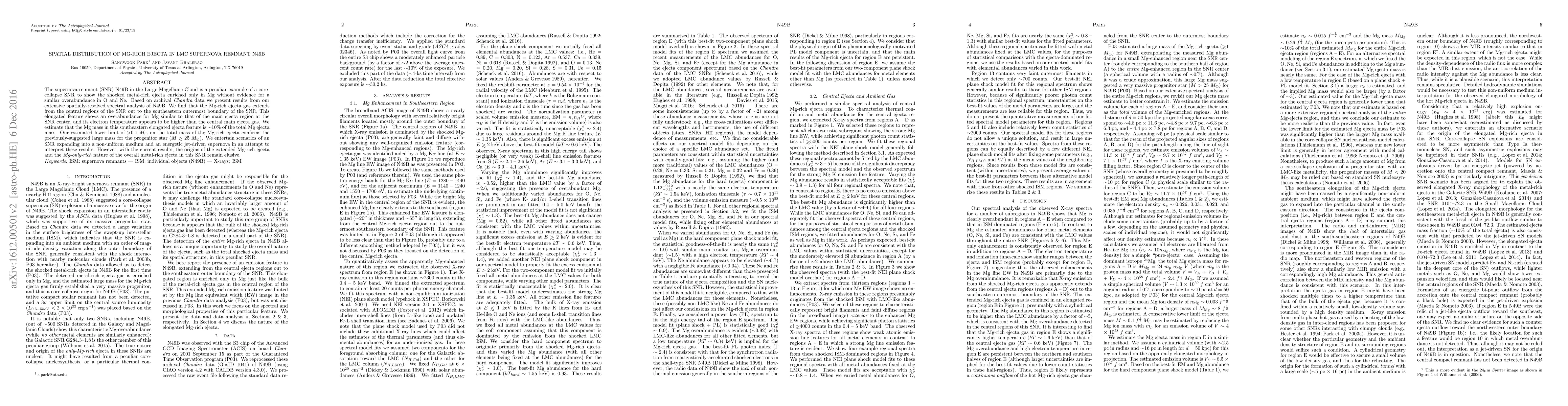 The study of the supernova remnant N49B in the Large Magellanic Cloud reveals an extended Mg-rich ejecta feature extending from the central region to the southeastern boundary, suggesting a non-uniform medium or jet-driven explosion. The Mg mass in this feature is estimated to be ~10% of the total, supporting a progenitor star mass greater than 25 M_sun.