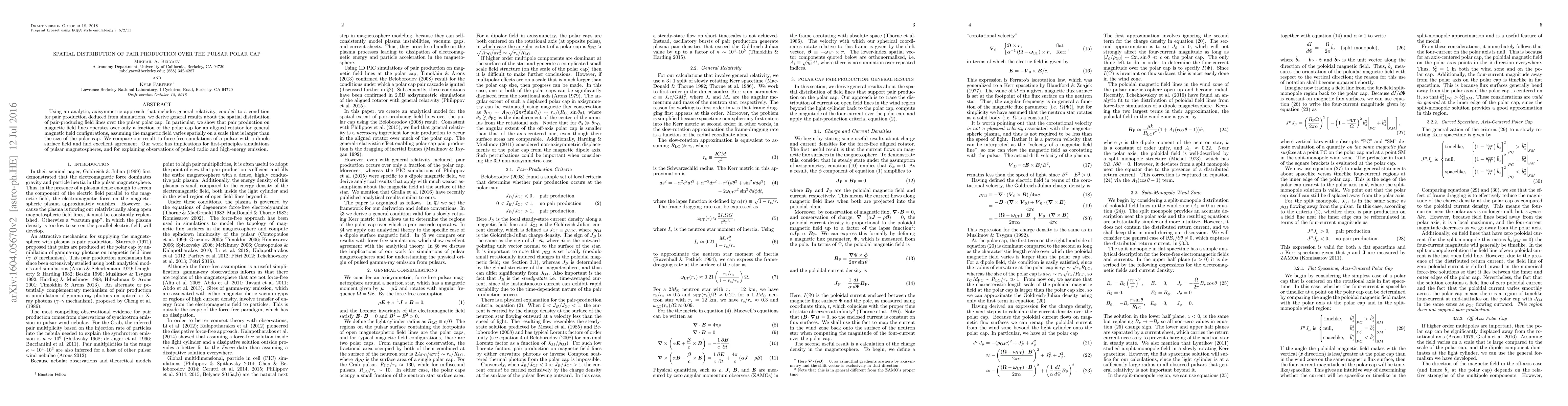 This paper uses an analytic, relativistic approach to determine the spatial distribution of pair production over a pulsar's polar cap, showing that it occurs only on a fraction of the cap for aligned rotators. The results align well with force-free simulations of pulsar magnetospheres, providing insights for simulations and observations of pulsar emissions.