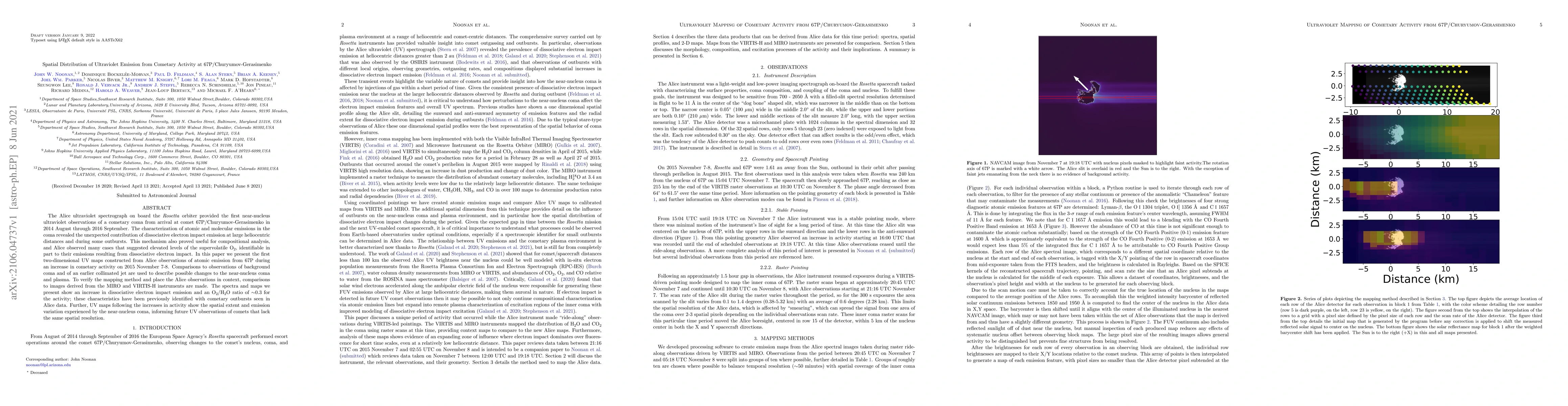 The Alice ultraviolet spectrograph on board the \textit{Rosetta} orbiter provided the first near-nucleus ultraviolet observations of a cometary coma from arrival at comet 67P/Churyumov-Gerasimenko in 2014 August through 2016 September. The characterization of atomic and molecular emissions in the coma revealed the unexpected contribution of dissociative electron impact emission at large heliocentric distances and during some outbursts. This mechanism also proved useful for compositional analysis, and Alice observed many cases that suggested elevated levels of the supervolatile \ce{O2}, identifiable in part to their emissions resulting from dissociative electron impact. In this paper we present the first two-dimensional UV maps constructed from Alice observations of atomic emission from 67P during an increase in cometary activity on 2015 November 7-8. Comparisons to observations of background coma and of an earlier collimated jet are used to describe possible changes to the near-nucleus coma and plasma. To verify the mapping method and place the Alice observations in context, comparisons to images derived from the MIRO and VIRTIS-H instruments are made. The spectra and maps we present show an increase in dissociative electron impact emission and an \ce{O2}/\ce{H2O} ratio of $\sim$0.3 for the activity; these characteristics have been previously identified with cometary outbursts seen in Alice data. Further, UV maps following the increases in activity show the spatial extent and emission variation experienced by the near-nucleus coma, informing future UV observations of comets that lack the same spatial resolution.