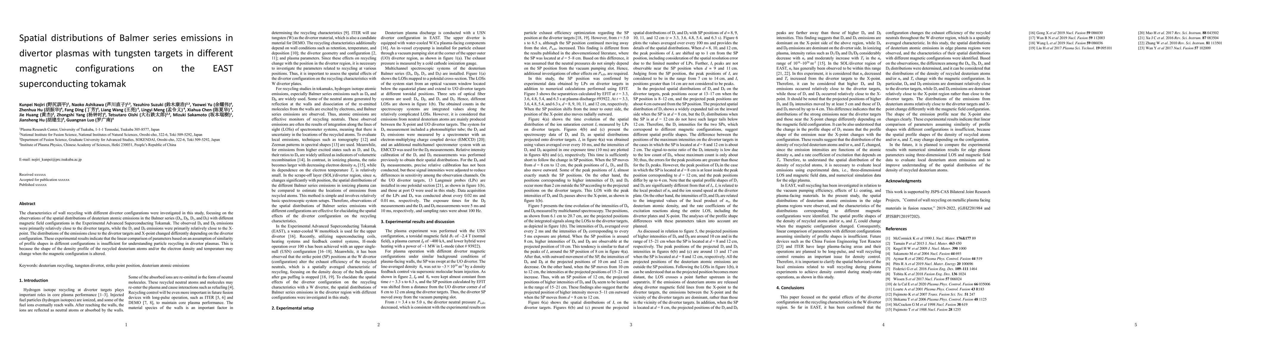 Researchers studied how deuterium emissions vary with different magnetic configurations in a tokamak plasma, finding that emissions patterns differ depending on the configuration.