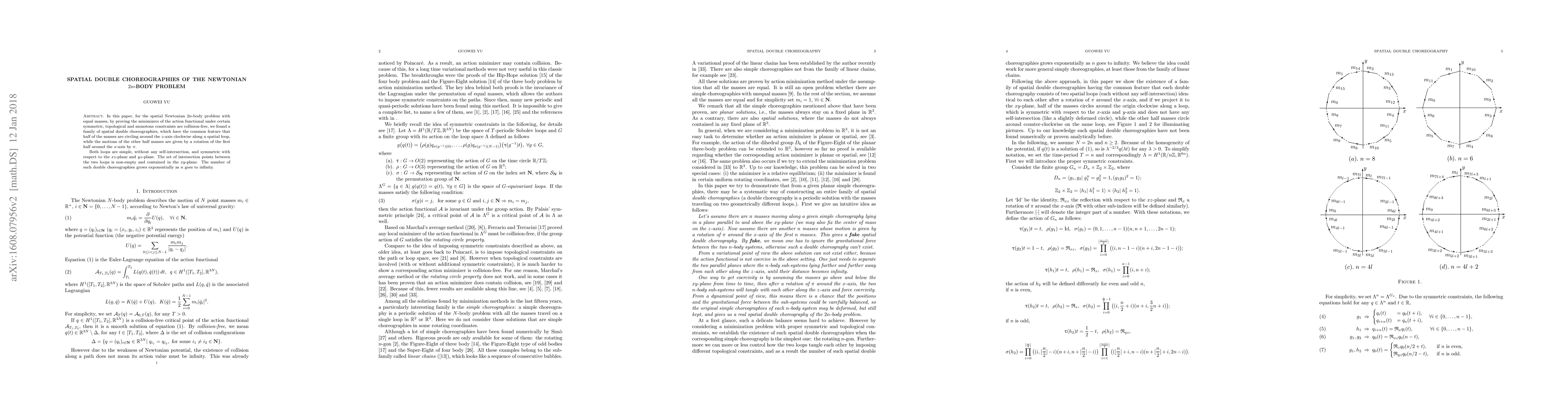 This paper identifies a family of spatial double choreographies in the Newtonian $2n$-body problem with equal masses, where half the bodies orbit the $z$-axis while the other half rotate around the $x$-axis by $\pi$, forming simple, non-intersecting loops symmetric about the $xz$- and $yz$-planes. The number of such choreographies grows exponentially with increasing $n$.