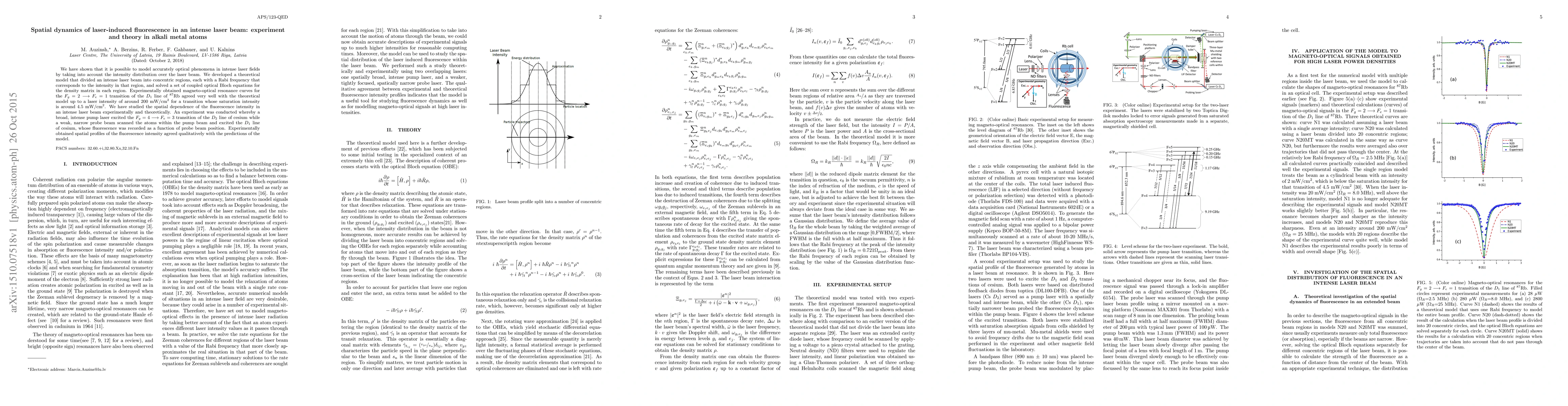 This paper presents a theoretical model for accurately modeling optical phenomena in intense laser fields by considering the spatial intensity distribution. Experimental results on alkali metal atoms, specifically $^{87}$Rb and cesium, show good agreement between the model and observed fluorescence intensity profiles, validating the theoretical approach.