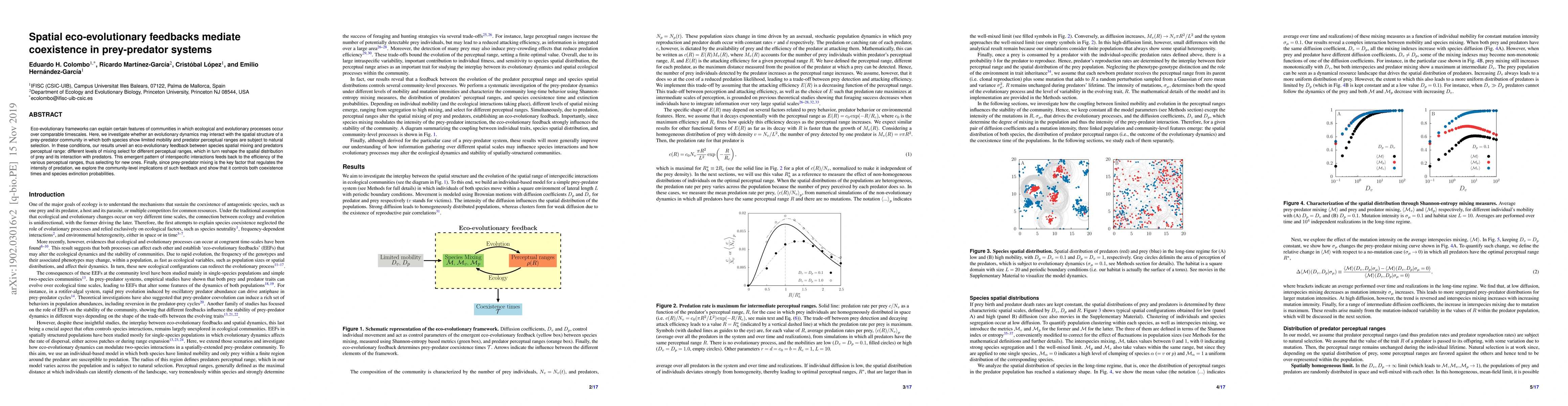 This research explores how spatial eco-evolutionary feedbacks influence prey-predator coexistence, revealing that varying levels of species mixing select for different predator perceptual ranges, which reshapes prey distribution and predation dynamics, ultimately affecting community stability and extinction probabilities.
