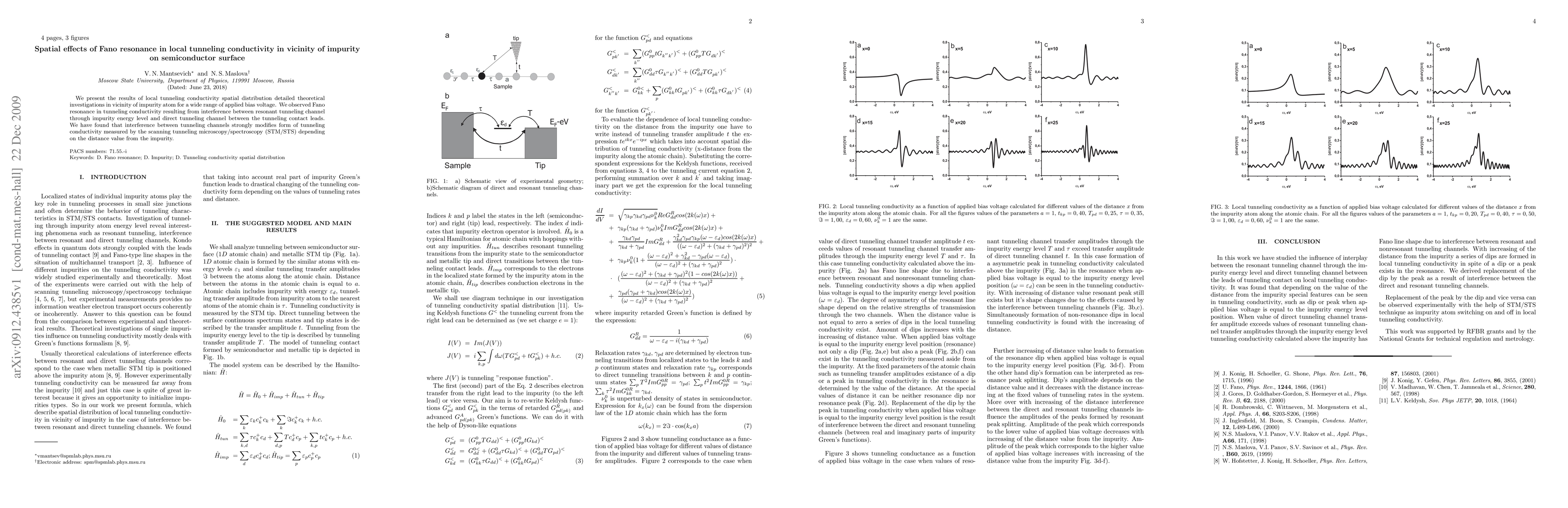 This paper investigates the spatial distribution of local tunneling conductivity in the vicinity of an impurity atom on a semiconductor surface, revealing Fano resonance due to interference between resonant and direct tunneling channels. The study finds that this interference significantly alters tunneling conductivity patterns observed by STM/STS, depending on the distance from the impurity.
