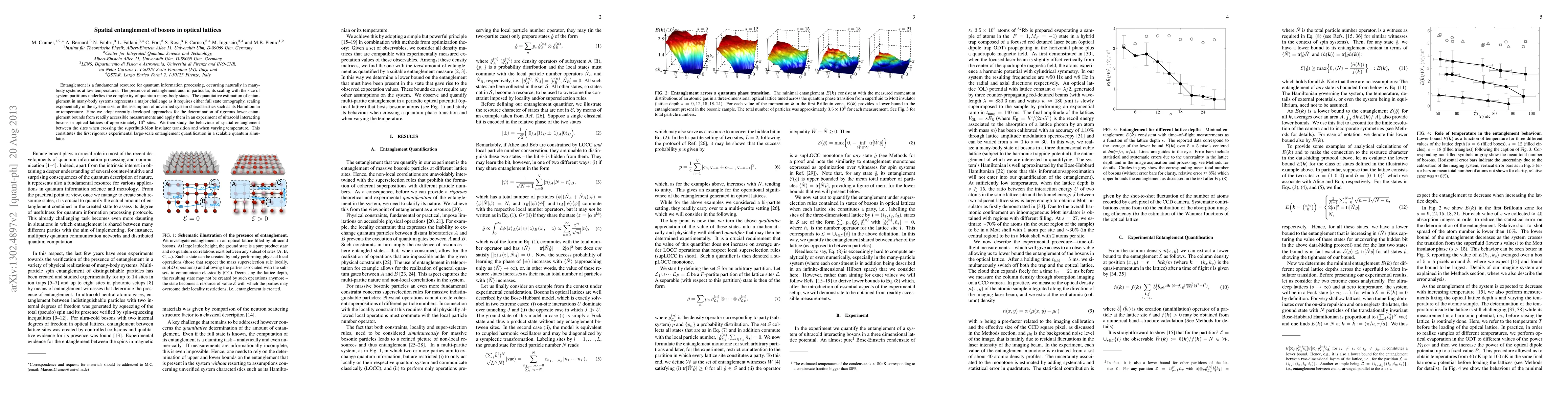This paper experimentally quantifies large-scale spatial entanglement in ultracold interacting bosons in optical lattices using rigorous lower bounds from accessible measurements. It investigates entanglement behavior across the superfluid-Mott insulator transition and varying temperatures, marking the first large-scale entanglement quantification in a scalable quantum simulator.