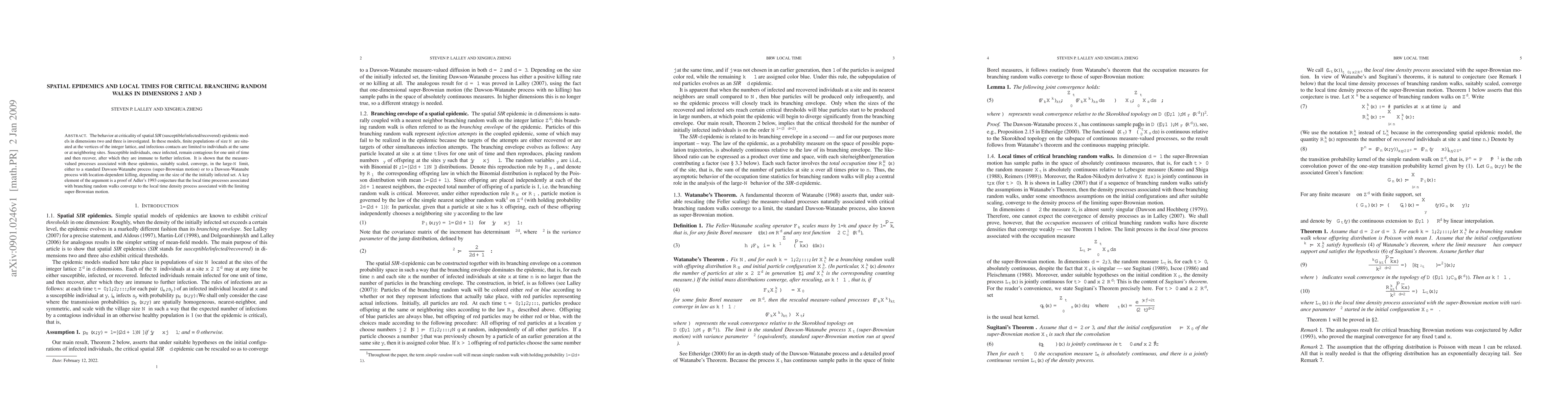 A study investigates how diseases spread in a grid-like environment, finding that the behavior of infected individuals converges to either a super-Brownian motion or a process with location-dependent killing, depending on the initial infection size.