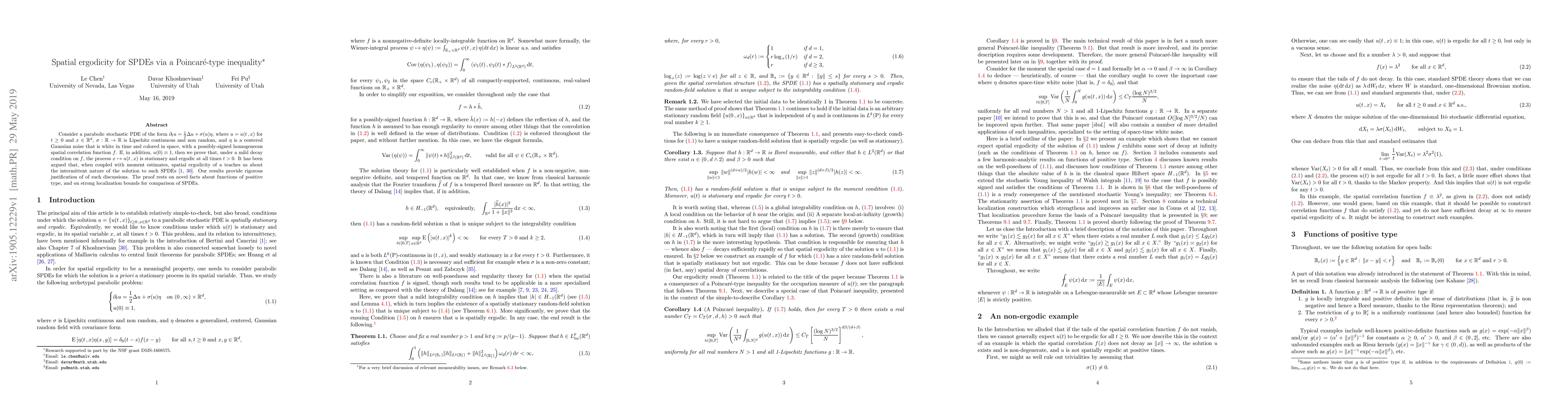 Consider a parabolic stochastic PDE of the form $\partial_t u=\frac{1}{2}\Delta u + \sigma(u)\eta$, where $u=u(t\,,x)$ for $t\ge0$ and $x\in\mathbb{R}^d$, $\sigma:\mathbb{R}\to\mathbb{R}$ is Lipschitz continuous and non random, and $\eta$ is a centered Gaussian noise that is white in time and colored in space, with a possibly-signed homogeneous spatial correlation function $f$. If, in addition, $u(0)\equiv1$, then we prove that, under a mild decay condition on $f$, the process $x\mapsto u(t\,,x)$ is stationary and ergodic at all times $t>0$. It has been argued that, when coupled with moment estimates, spatial ergodicity of $u$ teaches us about the intermittent nature of the solution to such SPDEs \cite{BertiniCancrini1995,KhCBMS}. Our results provide rigorous justification of of such discussions. The proof rests on novel facts about functions of positive type, and on strong localization bounds for comparison of SPDEs.