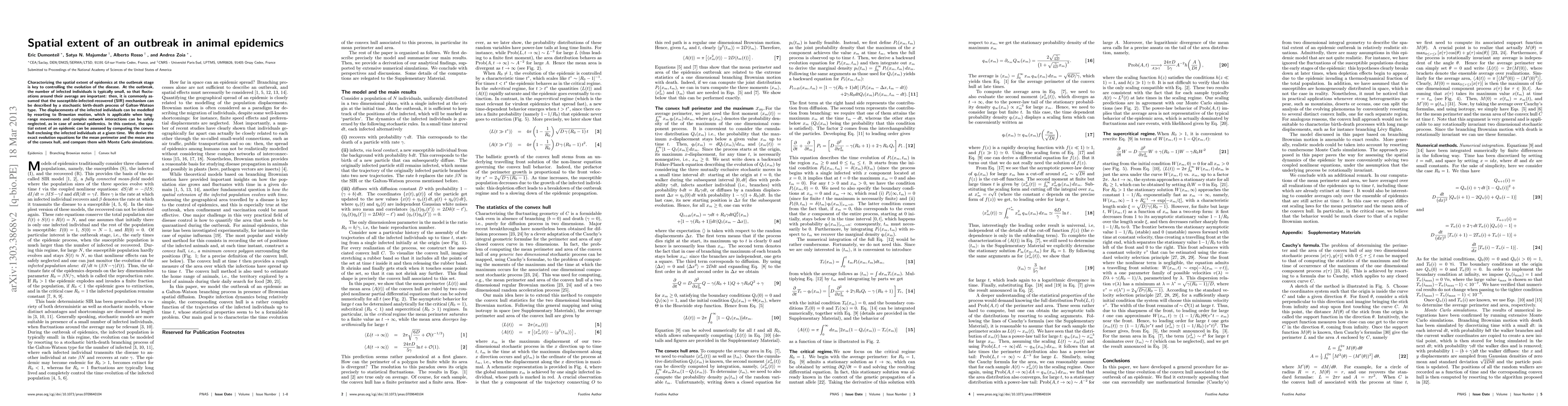 Researchers modeled the spatial extent of animal epidemics using Brownian motion and computed the mean perimeter and area of infected individuals' convex hulls, providing insights into controlling disease evolution.