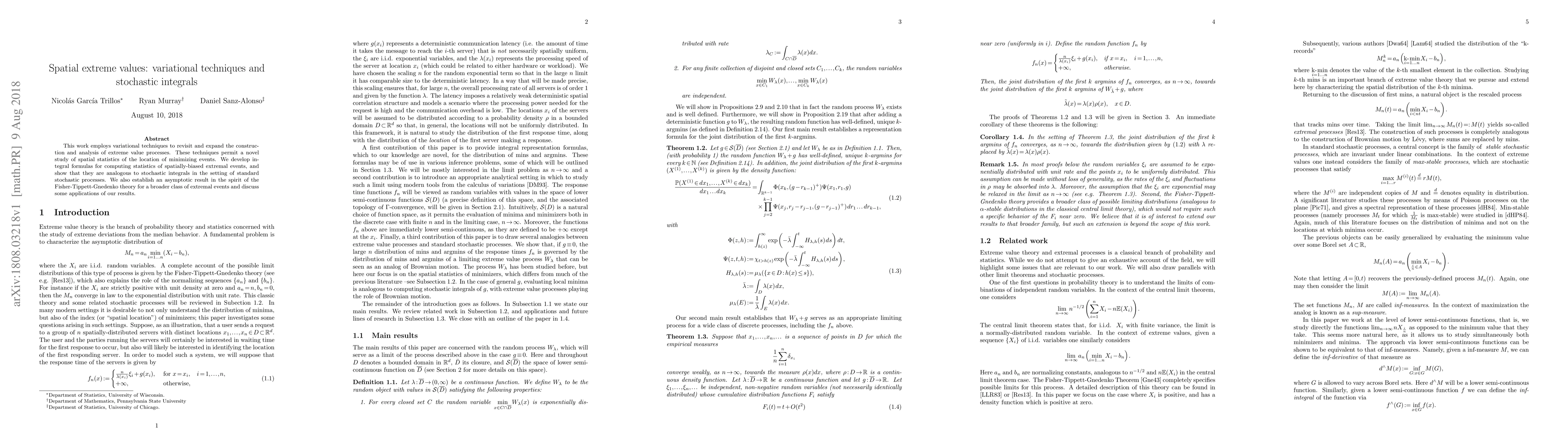 This work employs variational techniques to revisit and expand the construction and analysis of extreme value processes. These techniques permit a novel study of spatial statistics of the location of minimizing events. We develop integral formulas for computing statistics of spatially-biased extremal events, and show that they are analogous to stochastic integrals in the setting of standard stochastic processes. We also establish an asymptotic result in the spirit of the Fisher-Tippett-Gnedenko theory for a broader class of extremal events and discuss some applications of our results.