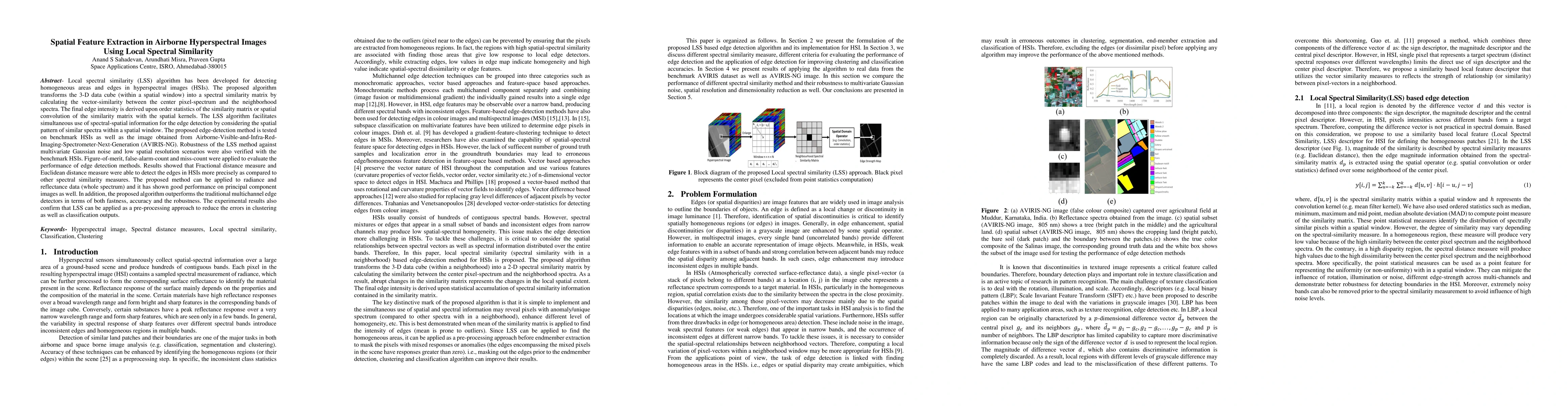 A new algorithm called Local Spectral Similarity detects edges in hyperspectral images by analyzing spectral patterns within a spatial window, outperforming traditional edge detectors in accuracy, speed, and robustness.