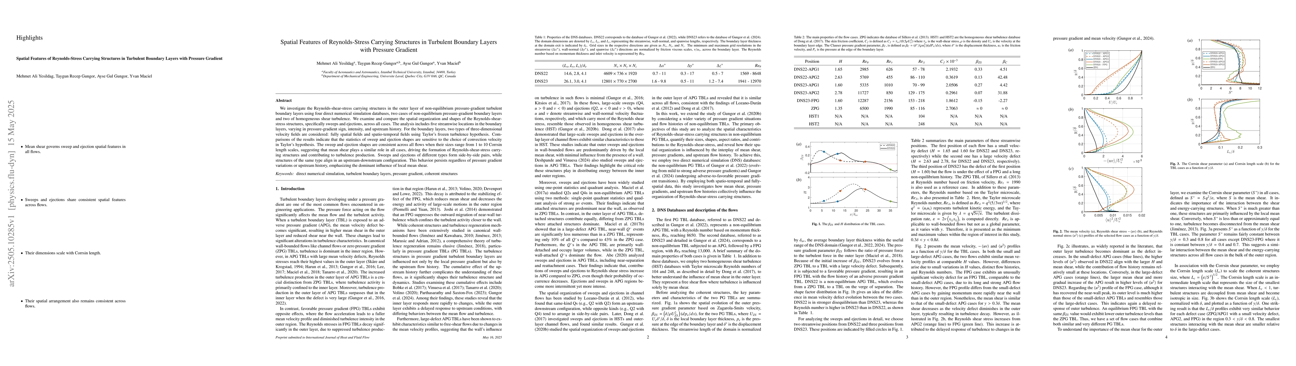 The study utilized four direct numerical simulation databases, encompassing two non-equilibrium pressure-gradient boundary layers and two homogeneous shear turbulence cases to analyze Reynolds-shear-stress carrying structures in the outer layer of turbulent boundary layers with pressure gradient.