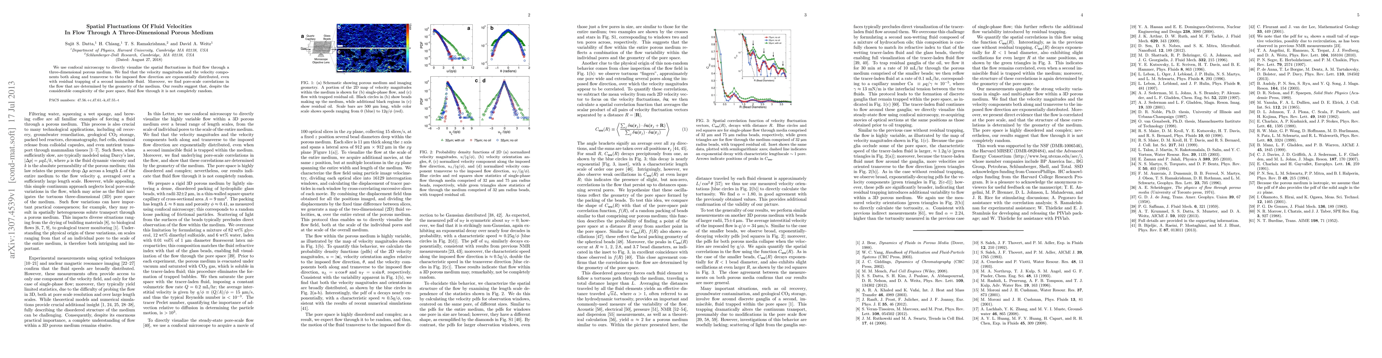 This study employs confocal microscopy to visualize fluid flow in a three-dimensional porous medium, revealing that fluid velocities are exponentially distributed and exhibit pore-scale correlations influenced by the medium's geometry, indicating that flow complexity does not lead to complete randomness.