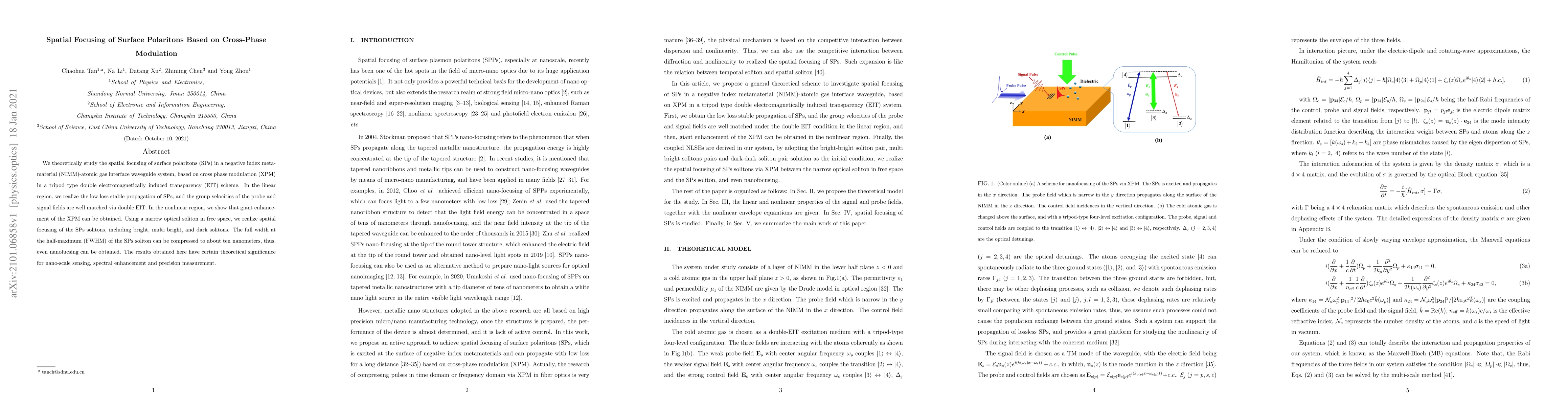 Researchers demonstrate spatial focusing of surface polaritons using cross-phase modulation in a negative index metamaterial system, achieving nanoscale compression with potential applications in micro-nano optics and sensing.
