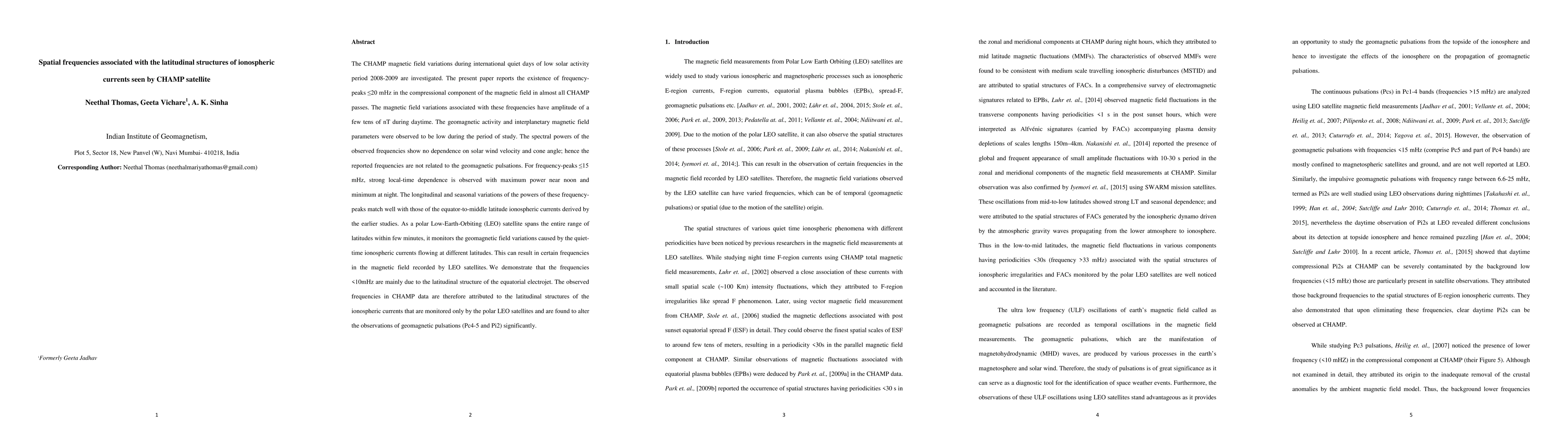 The CHAMP satellite detected frequency-peaks < 20 mHz in the magnetic field, primarily linked to the latitudinal structures of ionospheric currents, with significant local-time dependence and minimal relation to geomagnetic pulsations. The observed frequencies <10 mHz are mainly due to the equatorial electrojet, influencing the satellite's geomagnetic field observations.