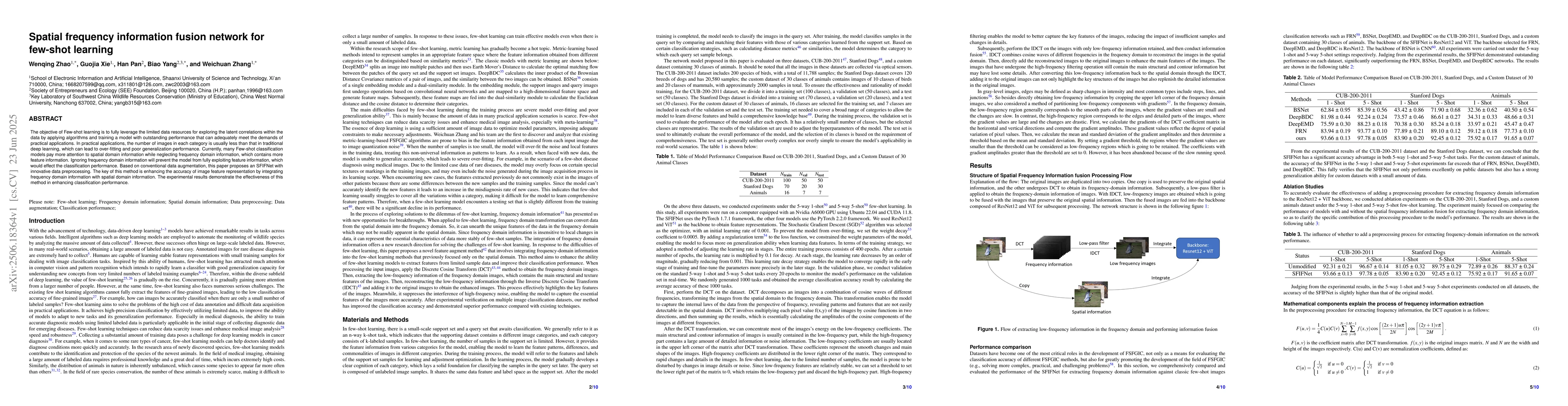 The objective of Few-shot learning is to fully leverage the limited data resources for exploring the latent correlations within the data by applying algorithms and training a model with outstanding performance that can adequately meet the demands of practical applications. In practical applications, the number of images in each category is usually less than that in traditional deep learning, which can lead to over-fitting and poor generalization performance. Currently, many Few-shot classification models pay more attention to spatial domain information while neglecting frequency domain information, which contains more feature information. Ignoring frequency domain information will prevent the model from fully exploiting feature information, which would effect the classification performance. Based on conventional data augmentation, this paper proposes an SFIFNet with innovative data preprocessing. The key of this method is enhancing the accuracy of image feature representation by integrating frequency domain information with spatial domain information. The experimental results demonstrate the effectiveness of this method in enhancing classification performance.