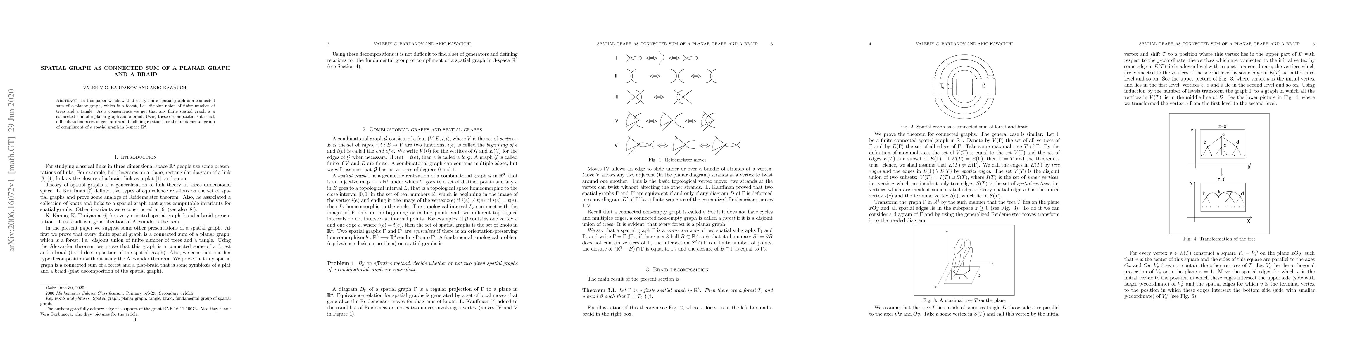 This paper demonstrates that every finite spatial graph can be decomposed into a connected sum of a planar forest and a braid. This decomposition aids in determining a set of generators and relations for the fundamental group of the complement of the spatial graph in 3-dimensional space.