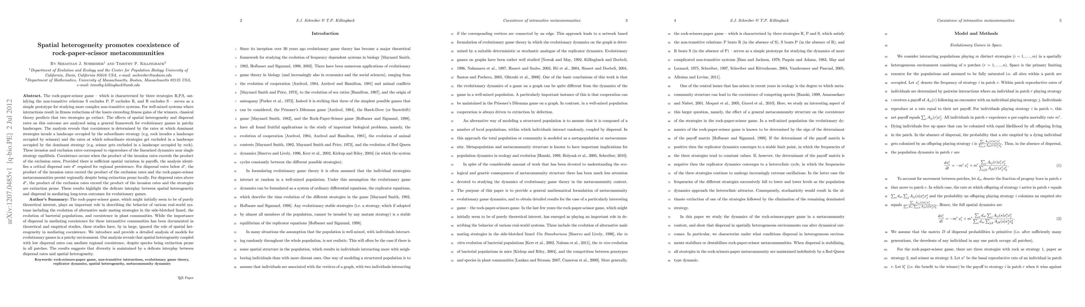The study shows that spatial differences and dispersal rates influence whether competing strategies in a rock-paper-scissor game coexist or go extinct; moderate dispersal allows for regional persistence despite local extinctions, highlighting the importance of spatial structure in evolutionary dynamics.