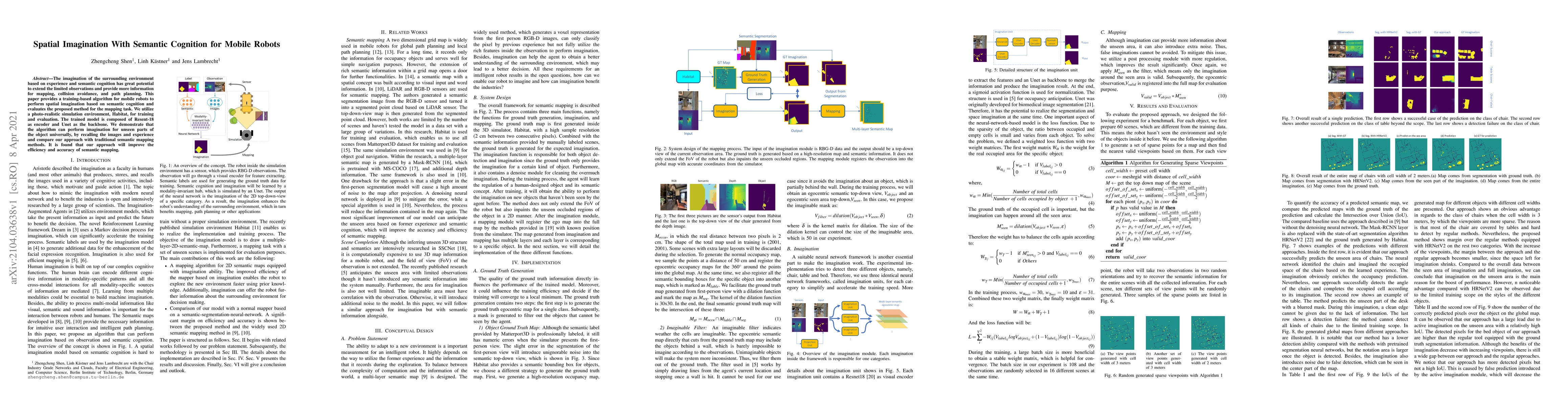 This paper proposes a training-based algorithm for mobile robots to enhance spatial imagination using semantic cognition, evaluated in a photo-realistic simulation. The model, combining Resent-18 and Unet, demonstrates improved efficiency and accuracy in semantic mapping compared to traditional methods.