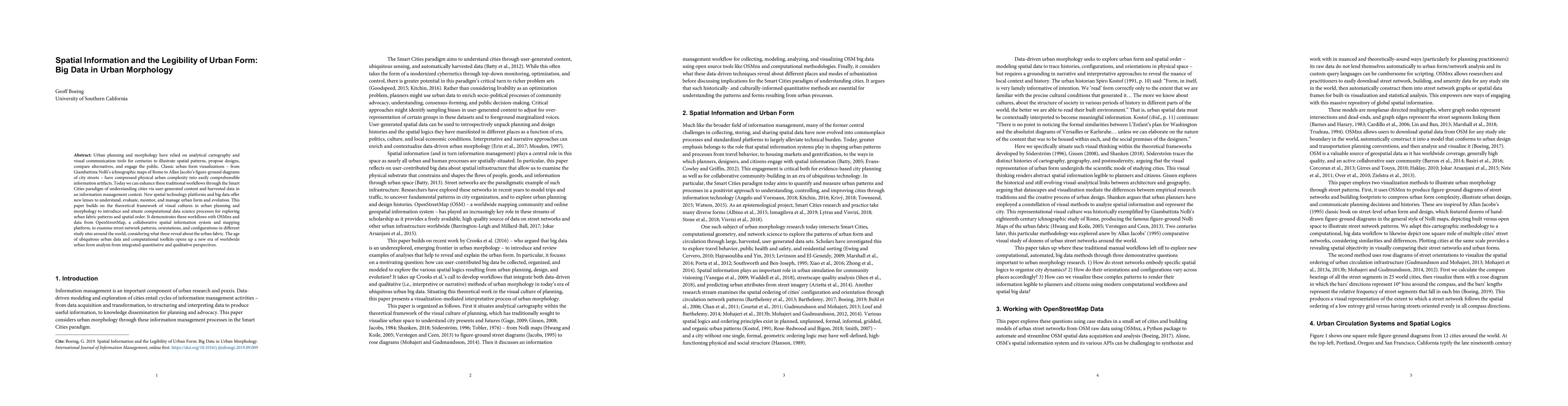 This paper explores the application of big data and computational data science to urban morphology and planning, using OSMnx and OpenStreetMap data to analyze street network patterns globally. It highlights how new spatial technologies enhance traditional urban form visualizations and offer new insights into urban fabric and spatial order.