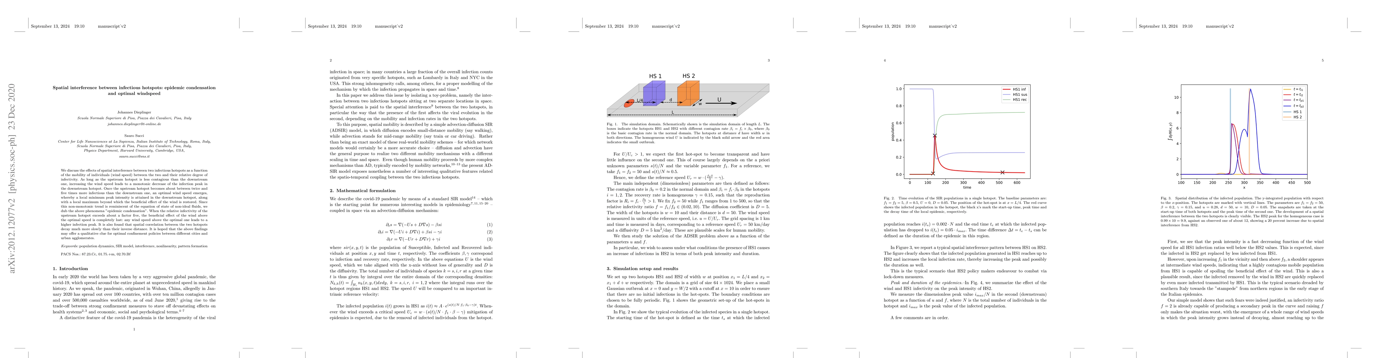 We discuss the effects of spatial interference between two infectious hotspots as a function of the mobility of individuals (wind speed) between the two and their relative degree of infectivity. As long as the upstream hotspot is less contagious than the downstream one, increasing the wind speed leads to a monotonic decrease of the infection peak in the downstream hotspot. Once the upstream hotspot becomes about between twice and five times more infectious than the downstream one, an optimal wind speed emerges, whereby a local minimum peak intensity is attained in the downstream hotspot, along with a local maximum beyond which the beneficial effect of the wind is restored. Since this non-monotonic trend is reminiscent of the equation of state of non-ideal f luids, we dub the above phenomena epidemic condensation. When the relative infectivity of the upstream hotspot exceeds about a factor five, the beneficial effect of the wind above the optimal speed is completely lost: any wind speed above the optimal one leads to a higher infection peak. It is also found that spatial correlation between the two hotspots decay much more slowly than their inverse distance. It is hoped that the above findings may offer a qualitative clue for optimal confinement policies between different cities and urban agglomerates.