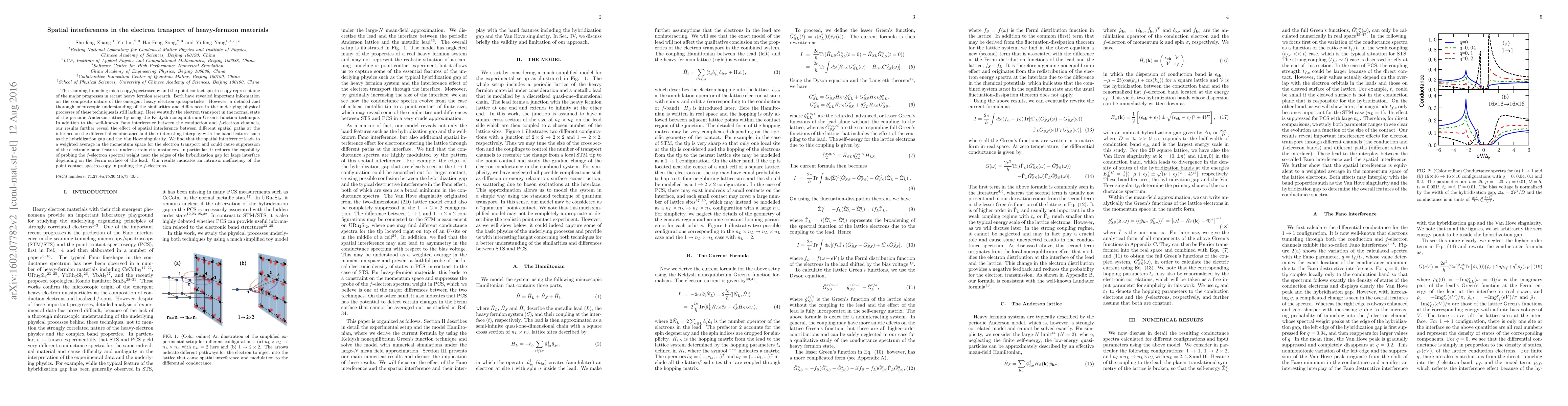 The scanning tunneling microscopy/spectroscopy and the point contact spectroscopy represent one of the major progresses in recent heavy fermion research. Both have revealed important information on the composite nature of the emergent heavy electron quasiparticles. However, a detailed and thorough microscopic understanding of the similarities and differences in the underlying physical processes of these techniques is still lacking. Here we study the electron transport in the normal state of the periodic Anderson lattice by using the Keldysh nonequilibrium Green's function technique. In addition to the well-known Fano interference between the conduction and f-electron channels, our results further reveal the effect of spatial interference between different spatial paths at the interface on the differential conductance and their interesting interplay with the band features such as the hybridization gap and the Van Hove singularity. We find that the spatial interference leads to a weighted average in the momentum space for the electron transport and could cause suppression of the electronic band features under certain circumstances. In particular, it reduces the capability of probing the f-electron spectral weight near the edges of the hybridization gap for large interface depending on the Fermi surface of the lead. Our results indicates an intrinsic inefficiency of the point contact spectroscopy in probing the f-electrons.