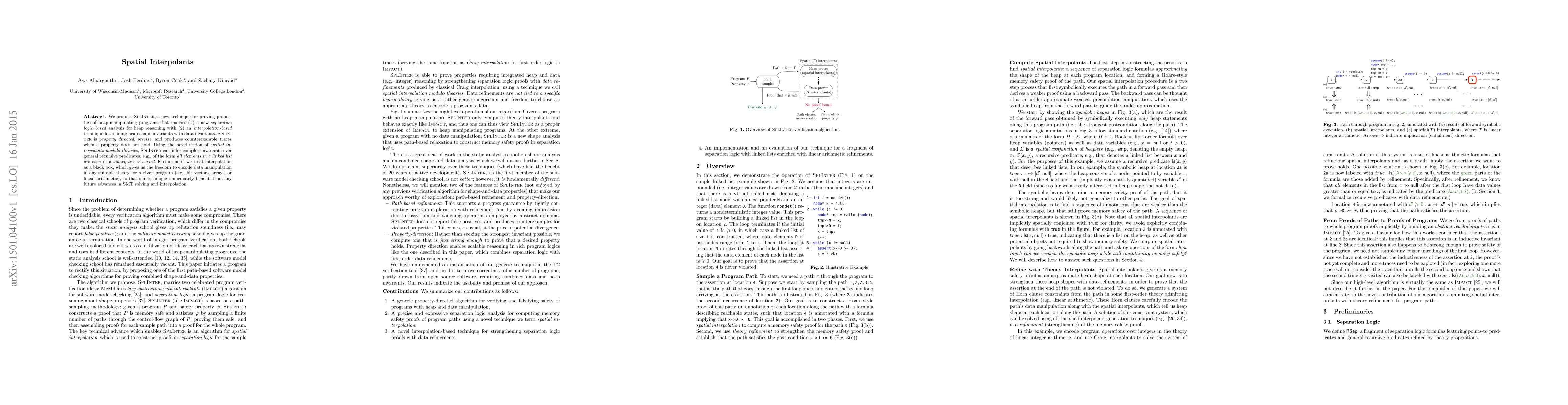 Researchers propose Splinter, a technique for proving properties of heap-manipulating programs using separation logic and interpolation-based analysis, enabling precise verification and counterexample tracing.