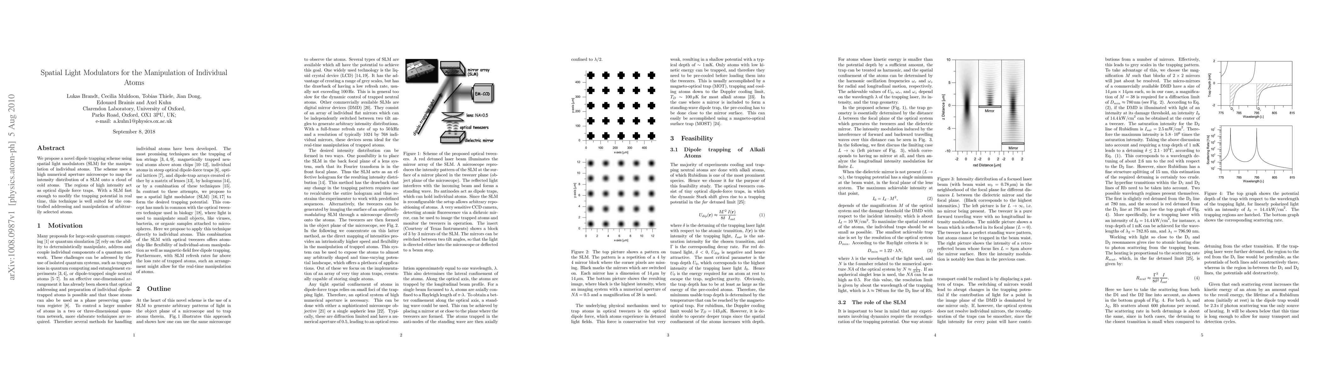 This paper proposes a novel method using spatial light modulators (SLM) to manipulate individual atoms via dipole trapping. The technique employs a high numerical aperture microscope to project SLM intensity patterns onto a cloud of cold atoms, creating optical dipole force traps for precise atom manipulation.