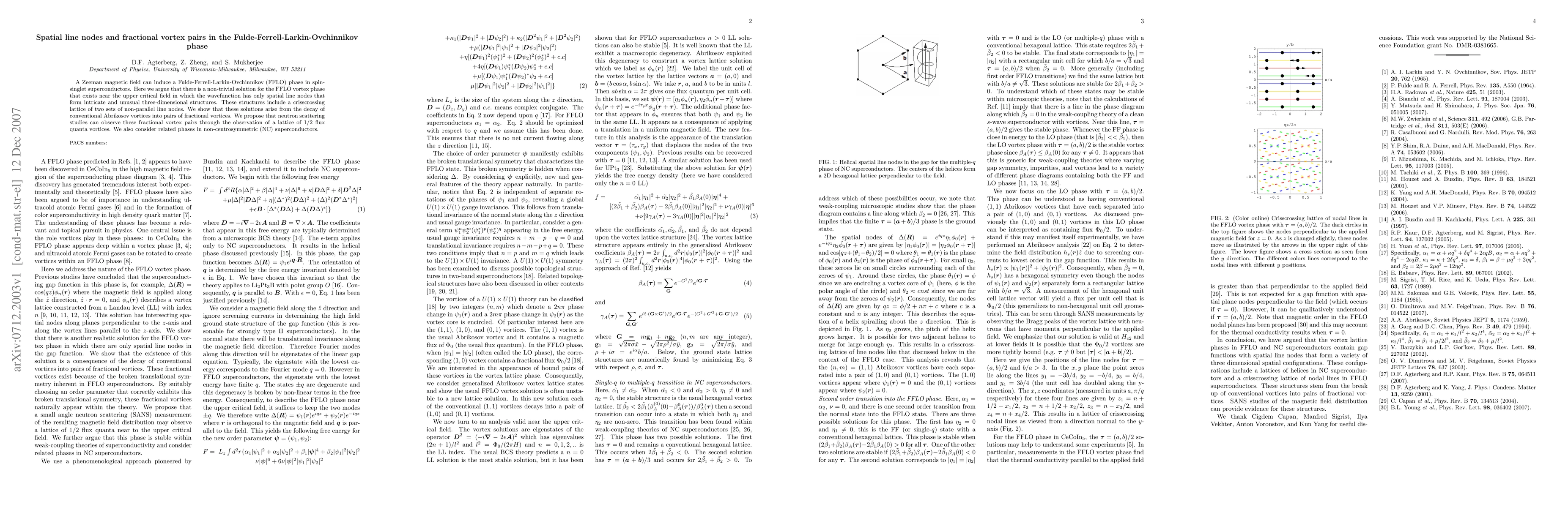 A Zeeman magnetic field can induce a Fulde-Ferrell-Larkin-Ovchinnikov (FFLO) phase in spin-singlet superconductors. Here we argue that there is a non-trivial solution for the FFLO vortex phase that exists near the upper critical field in which the wavefunction has only spatial line nodes that form intricate and unusual three-dimensional structures. These structures include a crisscrossing lattice of two sets of non-parallel line nodes. We show that these solutions arise from the decay of conventional Abrikosov vortices into pairs of fractional vortices. We propose that neutron scattering studies can observe these fractional vortex pairs through the observation of a lattice of 1/2 flux quanta vortices. We also consider related phases in non-centrosymmetric (NC) superconductors.