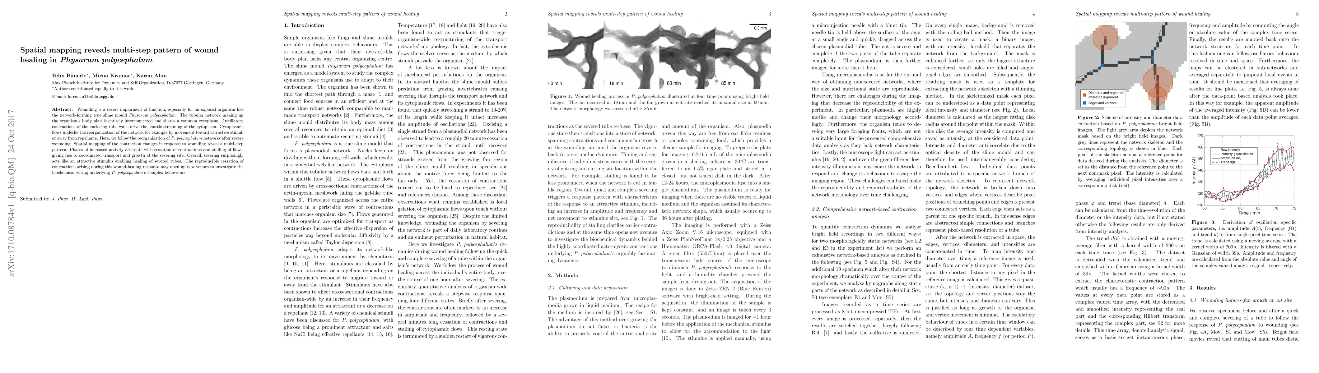 This paper investigates the multi-step pattern of wound healing in Physarum polycephalum, revealing alternating phases of increased activity and cessation of contractions. The study shows that wounding acts as an attractive stimulus, facilitating the healing of severed tubes and suggesting potential new avenues for understanding the biochemical mechanisms behind the organism's complex behaviors.
