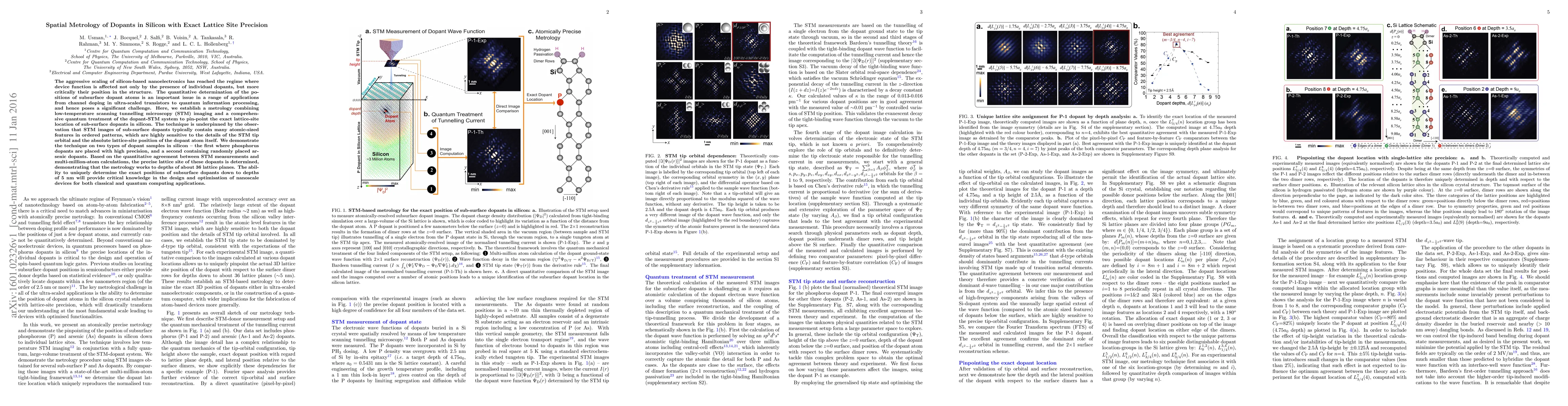 This paper presents a novel metrology combining low-temperature scanning tunnelling microscopy (STM) and quantum treatment to precisely determine the exact lattice-site locations of sub-surface dopants in silicon. The method successfully identifies dopant positions in silicon to depths of about 36 lattice planes, providing critical insights for nanoscale device design in both classical and quantum computing.