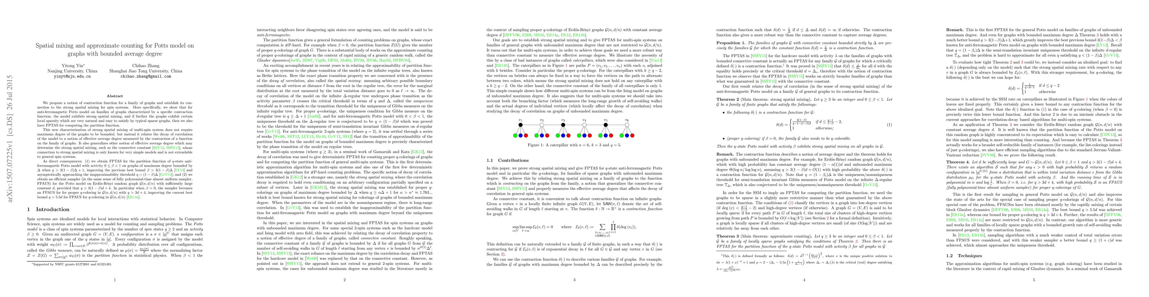 We propose a notion of contraction function for a family of graphs and establish its connection to the strong spatial mixing for spin systems. More specifically, we show that for anti-ferromagnetic Potts model on families of graphs characterized by a specific contraction function, the model exhibits strong spatial mixing, and if further the graphs exhibit certain local sparsity which are very natural and easy to satisfy by typical sparse graphs, then we also have FPTAS for computing the partition function. This new characterization of strong spatial mixing of multi-spin system does not require maximum degree of the graphs to be bounded, but instead it relates the decay of correlation of the model to a notion of effective average degree measured by the contraction of a function on the family of graphs. It also generalizes other notion of effective average degree which may determine the strong spatial mixing, such as the connective constant, whose connection to strong spatial mixing is only known for very simple models and is not extendable to general spin systems. As direct consequences: (1) we obtain FPTAS for the partition function of $q$-state anti-ferromagnetic Potts model with activity $0\le\beta<1$ on graphs of maximum degree bounded by $d$ when $q> 3(1-\beta)d+1$, improving the previous best bound $\beta> 3(1-\beta)d$ and asymptotically approaching the inapproximability threshold $q=(1-\beta)d$, and (2) we obtain an efficient sampler (in the same sense of fully polynomial-time almost uniform sampler, FPAUS) for the Potts model on Erd\H{o}s-R\'enyi random graph $\mathcal{G}(n,d/n)$ with sufficiently large constant $d$, provided that $q> 3(1-\beta)d+4$. In particular when $\beta=0$, the sampler becomes an FPAUS for for proper $q$-coloring in $\mathcal{G}(n,d/n)$ with $q> 3d+4$, improving the current best bound $q> 5.5d$ for FPAUS for $q$-coloring in $\mathcal{G}(n,d/n)$.