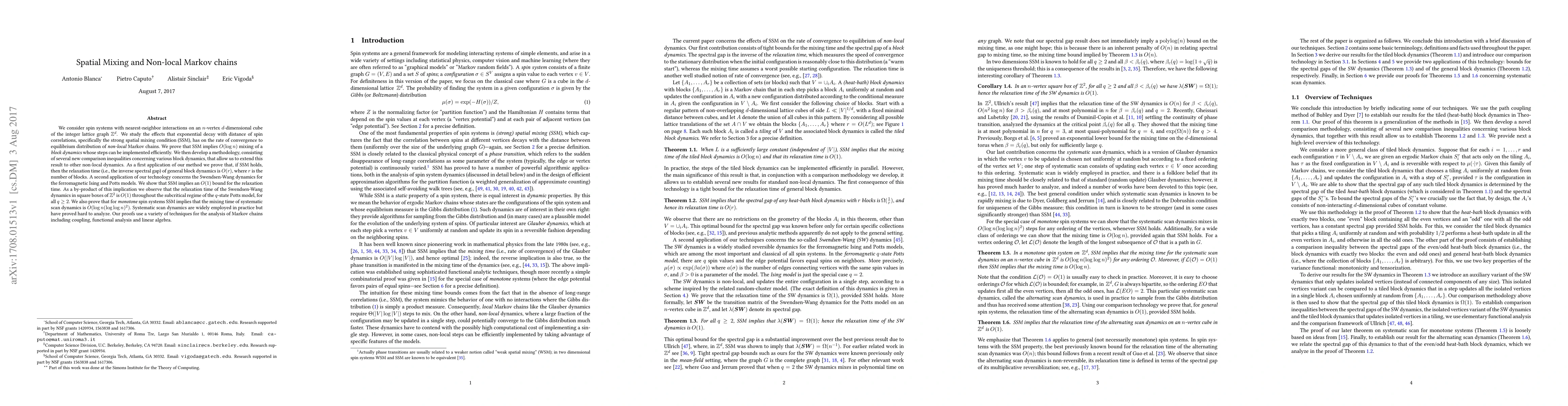We consider spin systems with nearest-neighbor interactions on an $n$-vertex $d$-dimensional cube of the integer lattice graph $\mathbb{Z}^d$. We study the effects that exponential decay with distance of spin correlations, specifically the strong spatial mixing condition (SSM), has on the rate of convergence to equilibrium distribution of non-local Markov chains. We prove that SSM implies $O(\log n)$ mixing of a block dynamics whose steps can be implemented efficiently. We then develop a methodology, consisting of several new comparison inequalities concerning various block dynamics, that allow us to extend this result to other non-local dynamics. As a first application of our method we prove that, if SSM holds, then the relaxation time (i.e., the inverse spectral gap) of general block dynamics is $O(r)$, where $r$ is the number of blocks. A second application of our technology concerns the Swendsen-Wang dynamics for the ferromagnetic Ising and Potts models. We show that SSM implies an $O(1)$ bound for the relaxation time. As a by-product of this implication we observe that the relaxation time of the Swendsen-Wang dynamics in square boxes of $\mathbb{Z}^2$ is $O(1)$ throughout the subcritical regime of the $q$-state Potts model, for all $q \ge 2$. We also prove that for monotone spin systems SSM implies that the mixing time of systematic scan dynamics is $O(\log n (\log \log n)^2)$. Systematic scan dynamics are widely employed in practice but have proved hard to analyze. Our proofs use a variety of techniques for the analysis of Markov chains including coupling, functional analysis and linear algebra.