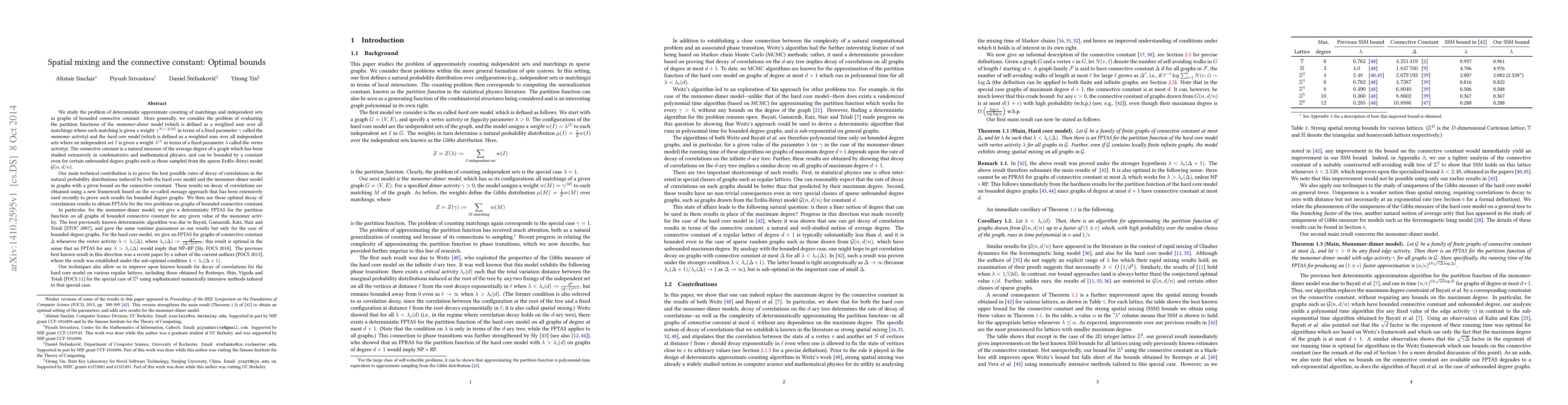 This paper studies optimal bounds for deterministic approximate counting of matchings and independent sets in graphs with a bounded connective constant, improving upon existing results using a new framework.