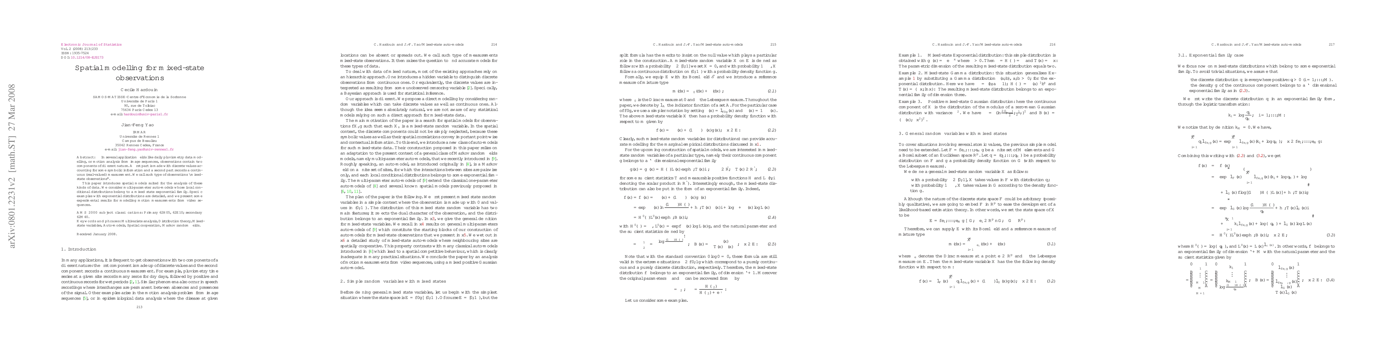 In several application fields like daily pluviometry data modelling, or motion analysis from image sequences, observations contain two components of different nature. A first part is made with discrete values accounting for some symbolic information and a second part records a continuous (real-valued) measurement. We call such type of observations "mixed-state observations". This paper introduces spatial models suited for the analysis of these kinds of data. We consider multi-parameter auto-models whose local conditional distributions belong to a mixed state exponential family. Specific examples with exponential distributions are detailed, and we present some experimental results for modelling motion measurements from video sequences.