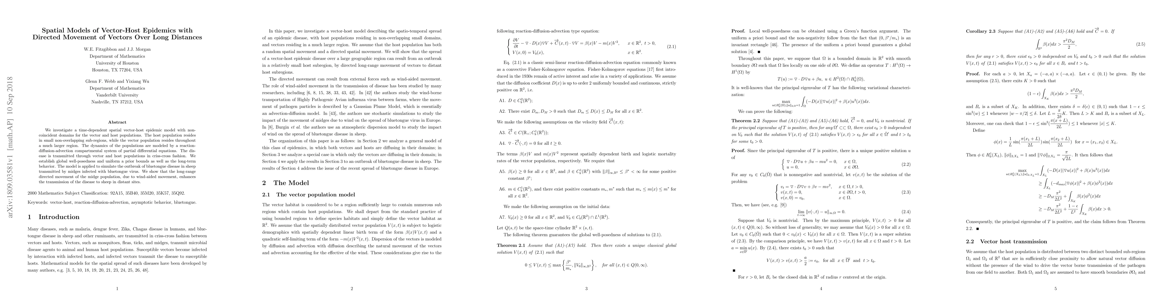 This paper develops a spatial vector-host epidemic model to study the dynamics of bluetongue disease in sheep, focusing on the long-range movement of midges. It establishes global well-posedness and demonstrates that wind-aided midge movement significantly increases disease transmission over long distances.