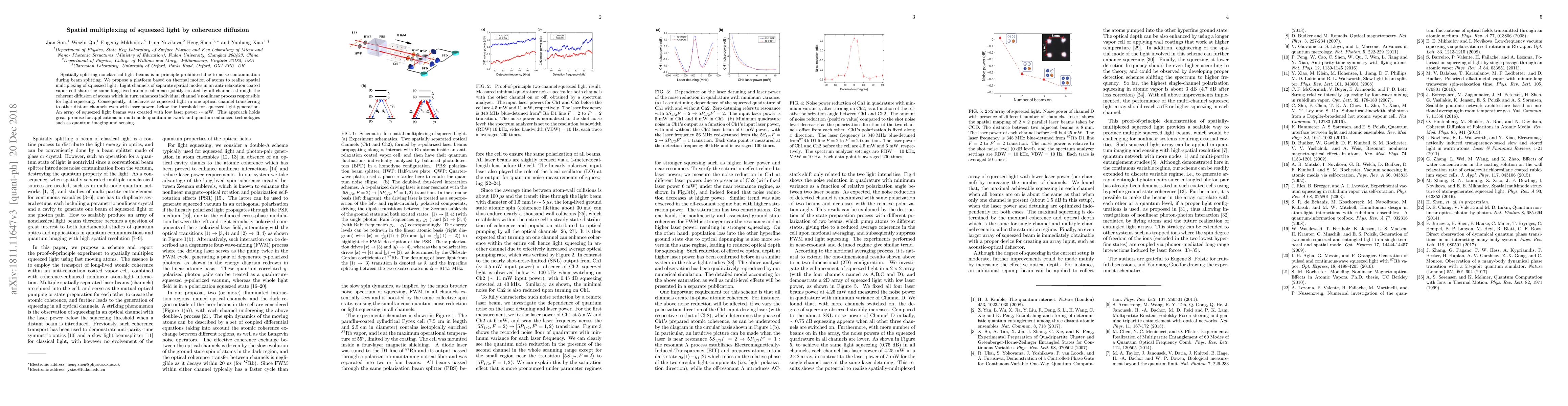 This research introduces a novel platform utilizing thermal motion of atoms to spatially multiplex squeezed light, overcoming noise issues typically associated with beam splitting. By leveraging coherent diffusion of atoms within an anti-relaxation coated vapor cell, squeezed light can be transferred across multiple channels with low laser power, promising advancements in quantum networks and enhanced sensing technologies.