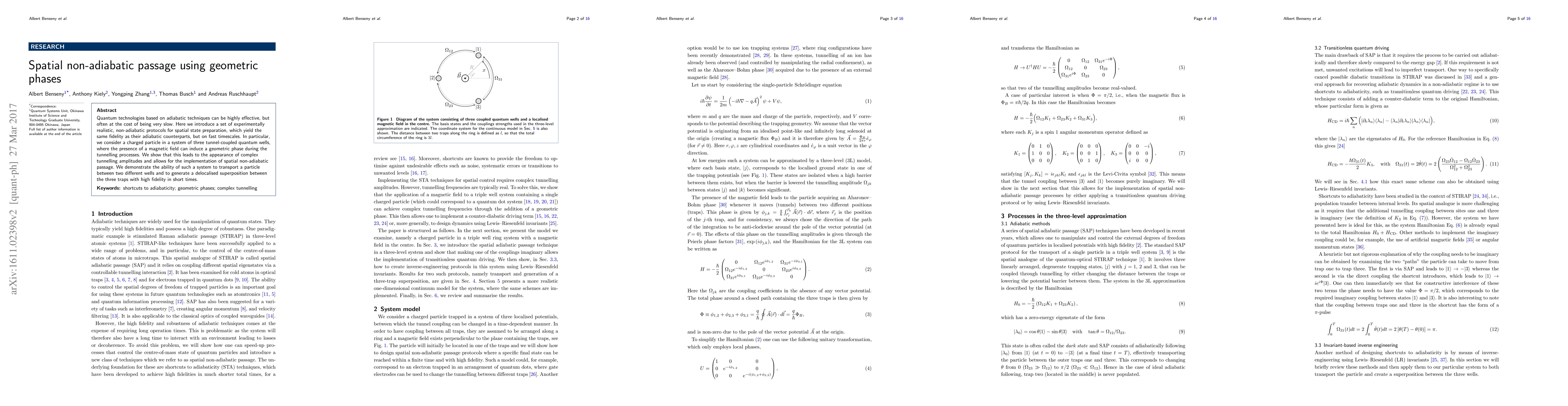 Quantum technologies based on adiabatic techniques can be highly effective, but often at the cost of being very slow. Here we introduce a set of experimentally realistic, non-adiabatic protocols for spatial state preparation, which yield the same fidelity as their adiabatic counterparts, but on fast timescales. In particular, we consider a charged particle in a system of three tunnel-coupled quantum wells, where the presence of a magnetic field can induce a geometric phase during the tunnelling processes. We show that this leads to the appearance of complex tunnelling amplitudes and allows for the implementation of spatial non-adiabatic passage. We demonstrate the ability of such a system to transport a particle between two different wells and to generate a delocalised superposition between the three traps with high fidelity in short times.