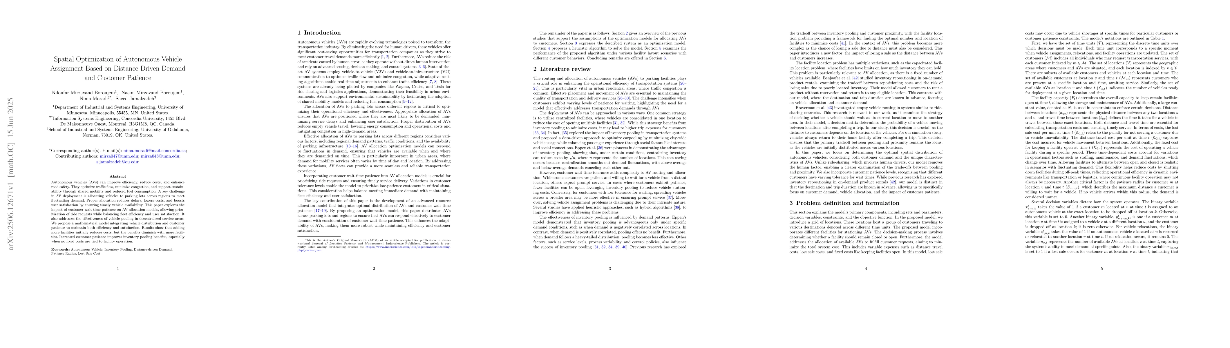 Autonomous vehicles (AVs) can improve efficiency, reduce costs, and enhance road safety. They optimize traffic flow, minimize congestion, and support sustainability through shared mobility and reduced fuel consumption. A key challenge in AV deployment is allocating vehicles to parking lots across regions to meet fluctuating demand. Proper allocation reduces delays, lowers costs, and boosts user satisfaction by ensuring timely vehicle availability. This paper explores the impact of customer wait time patience on AV allocation models, allowing prioritization of ride requests while balancing fleet efficiency and user satisfaction. It also addresses the effectiveness of vehicle pooling in decentralized service areas. We propose a mathematical model integrating vehicle distribution and customer patience to maintain both efficiency and satisfaction. Results show that adding more facilities initially reduces costs, but the benefits diminish with more facilities. Increased customer patience improves inventory pooling benefits, especially when no fixed costs are tied to facility operation.