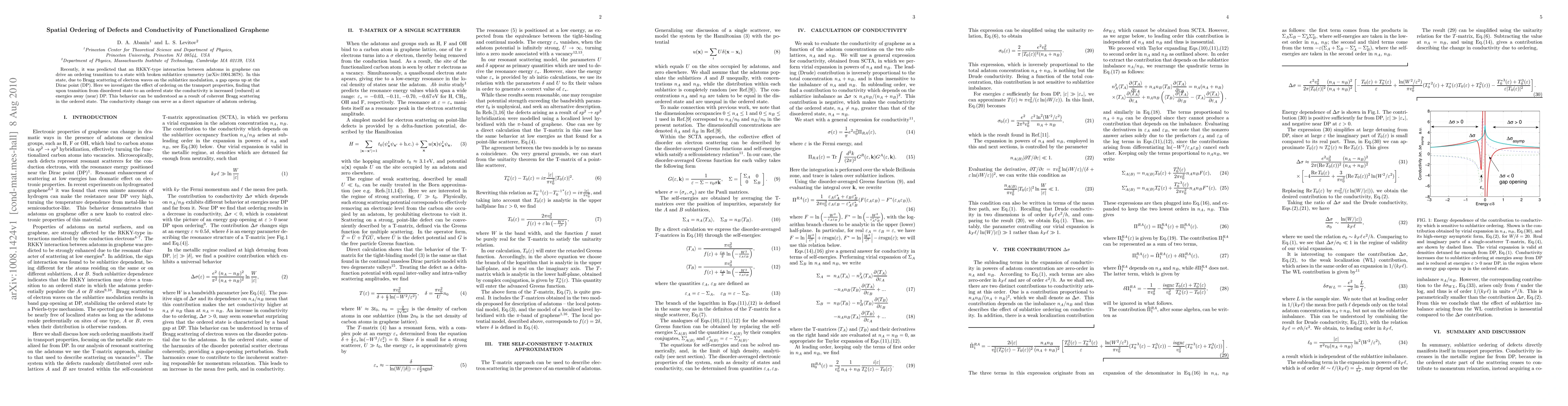 This paper explores how spatial ordering of defects (adatoms) in functionalized graphene affects its conductivity. Transitioning from a disordered to an ordered state enhances conductivity away from the Dirac point but reduces it near the Dirac point due to coherent Bragg scattering, providing a signature of adatom ordering.