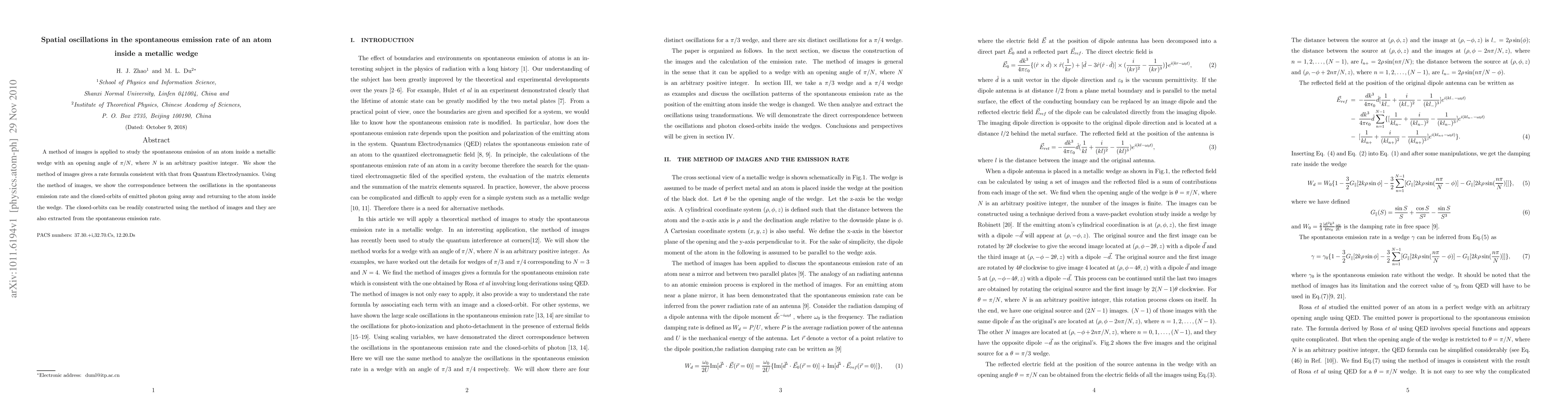 This paper uses the method of images to analyze the spontaneous emission rate of an atom inside a metallic wedge, demonstrating consistency with Quantum Electrodynamics. It reveals that oscillations in the emission rate correspond to closed-orbits of emitted photons, which can be visualized and extracted using the method of images.