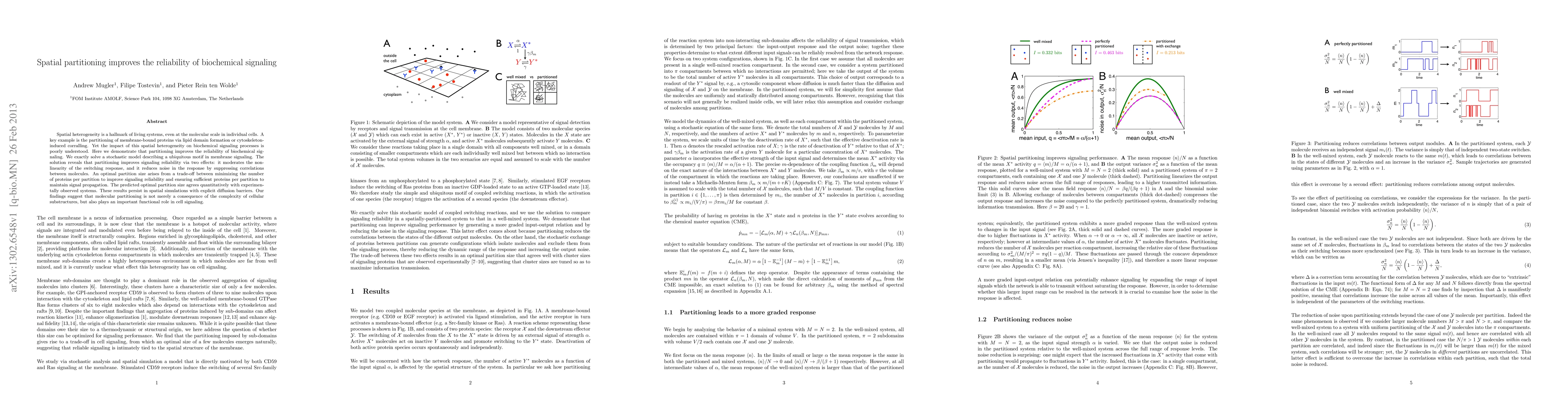 This paper demonstrates that spatial partitioning of membrane-bound proteins enhances the reliability of biochemical signaling by moderating switching response non-linearity and reducing noise through suppressed molecular correlations. The optimal partition size balances protein quantity for signal propagation and reliability.