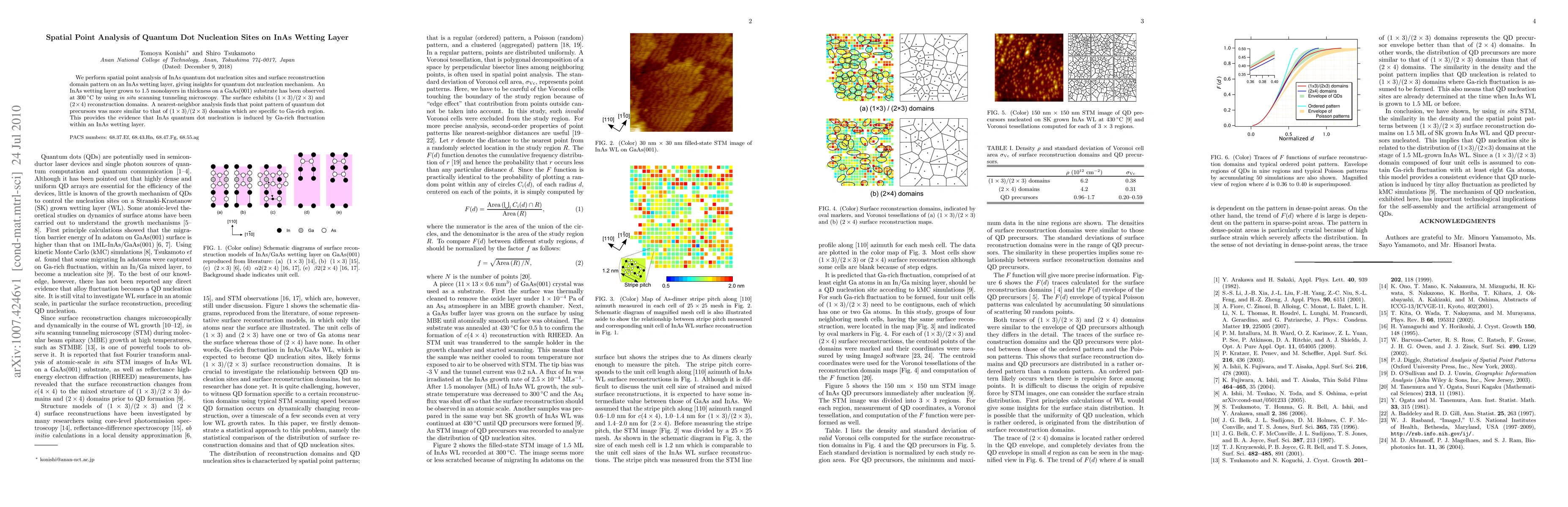 This study uses in situ scanning tunneling microscopy to analyze the nucleation sites of InAs quantum dots on a GaAs substrate, revealing that Ga-rich fluctuations in the InAs wetting layer induce quantum dot formation, with nucleation patterns correlating to (1x3)/(2x3) reconstruction domains.