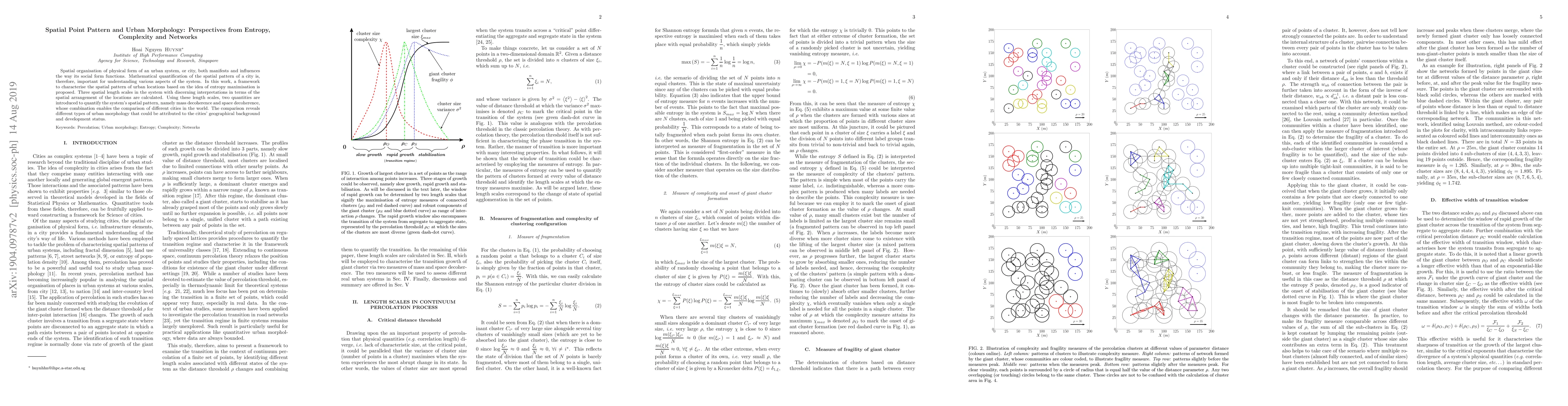Spatial organisation of physical form of an urban system, or city, both manifests and influences the way its social form functions. Mathematical quantification of the spatial pattern of a city is, therefore, important for understanding various aspects of the system. In this work, a framework to characterise the spatial pattern of urban locations based on the idea of entropy maximisation is proposed. Three spatial length scales in the system with discerning interpretations in terms of the spatial arrangement of the locations are calculated. Using these length scales, two quantities are introduced to quantify the system's spatial pattern, namely mass decoherence and space decoherence, whose combination enables the comparison of different cities in the world. The comparison reveals different types of urban morphology that could be attributed to the cities' geographical background and development status.