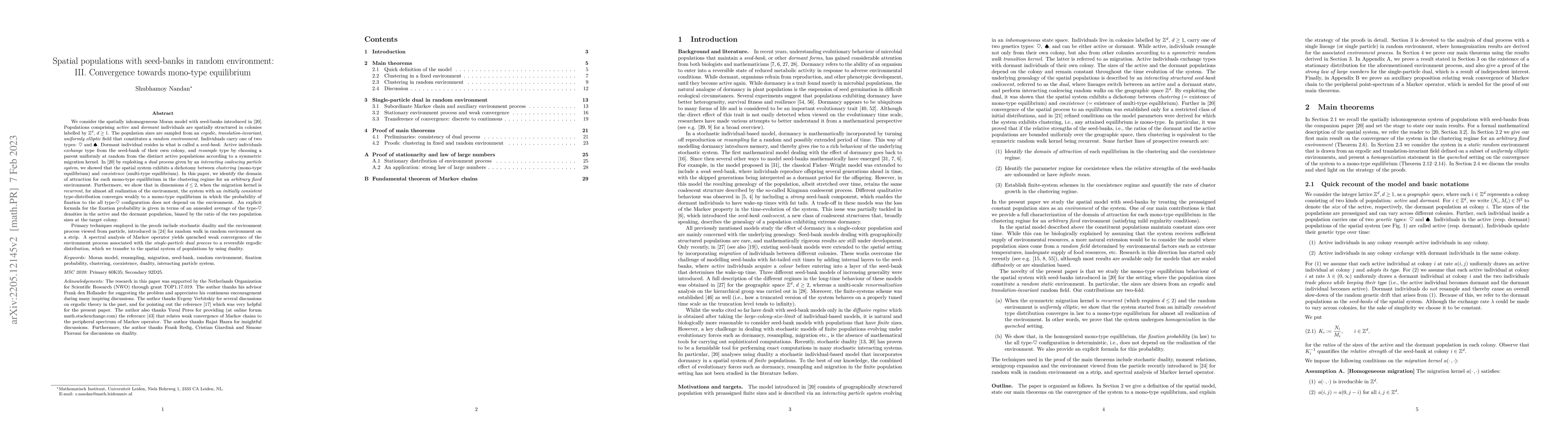 This paper examines the spatially inhomogeneous Moran model with seed-banks, focusing on the convergence towards a mono-type equilibrium in a random environment. The study identifies the domain of attraction for each mono-type equilibrium and shows that recurrent migration kernels lead to fixation in a single type, regardless of environmental specifics.