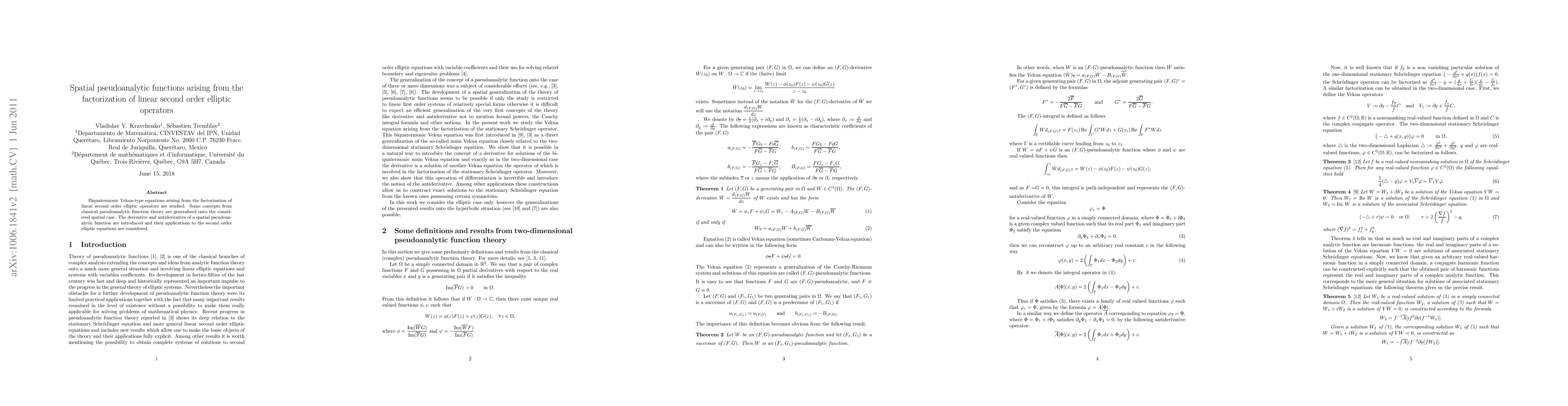 This paper explores biquaternionic Vekua-type equations derived from the factorization of linear second order elliptic operators, extending classical pseudoanalytic function theory to spatial contexts. It introduces spatial pseudoanalytic functions, their derivatives, and antiderivatives, and applies these concepts to solve second order elliptic equations.
