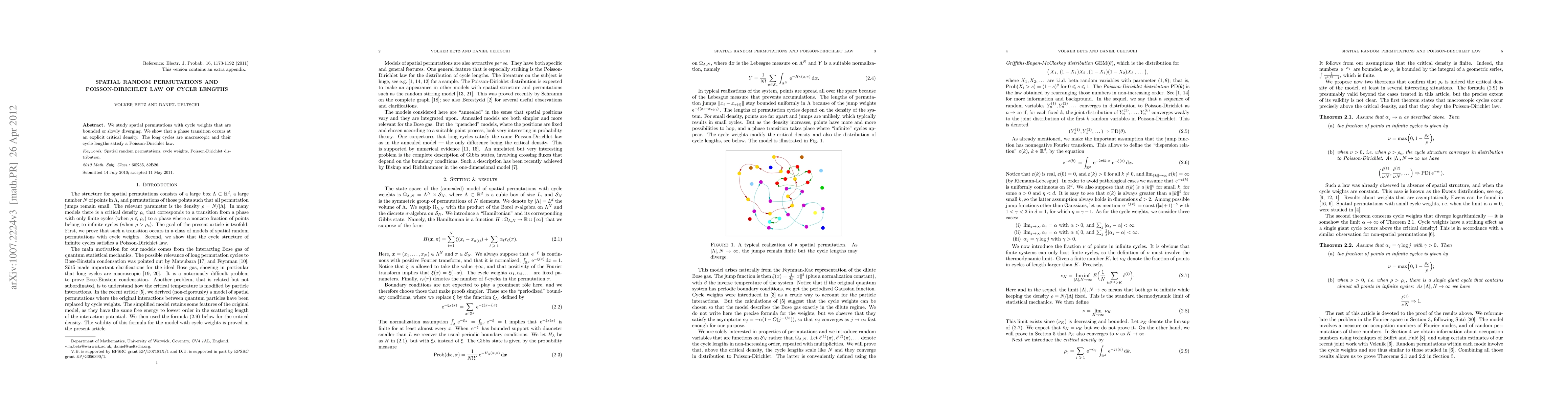 This paper investigates spatial random permutations with bounded or slowly diverging cycle weights, demonstrating a phase transition at a critical density where long cycles become macroscopic and their lengths follow a Poisson-Dirichlet law.