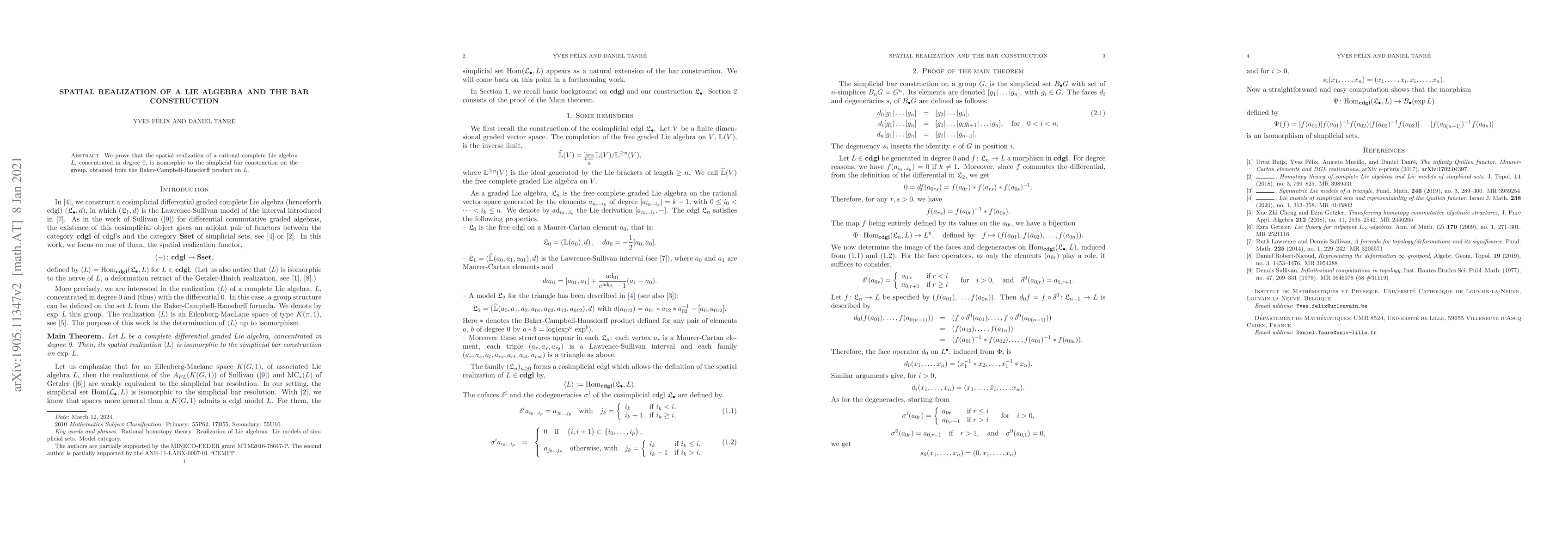 Summary: The paper establishes an isomorphism between the spatial realization of a rational complete Lie algebra and the simplicial bar construction derived from the group formed by the Baker-Campbell-Hausdorff product on the Lie algebra. This provides a geometric interpretation of the algebraic structure.