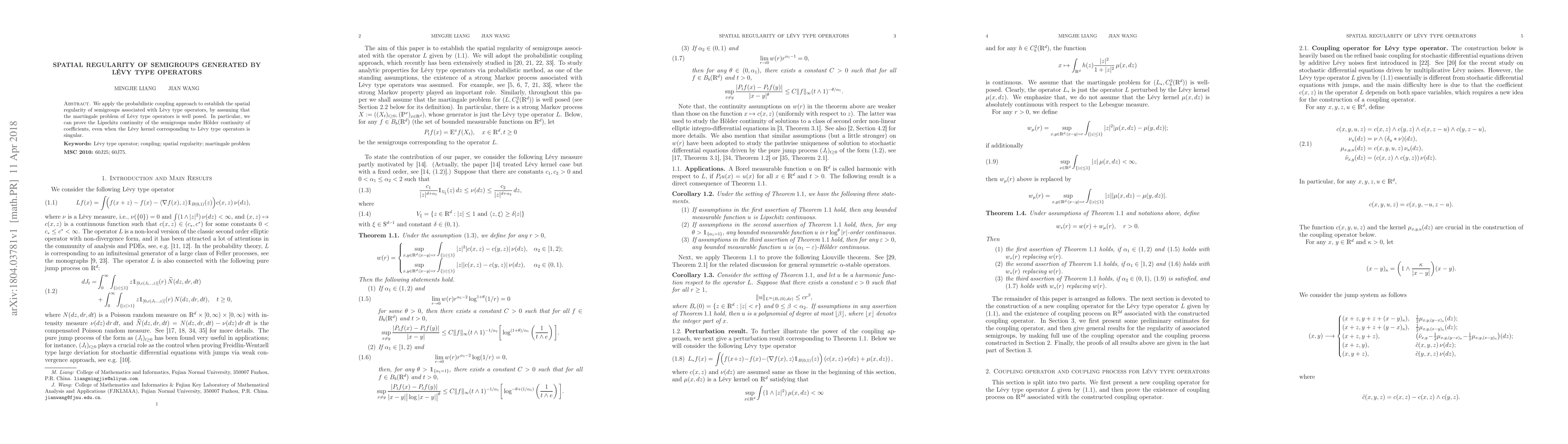 This paper uses the probabilistic coupling approach to demonstrate the spatial regularity of semigroups generated by Lévy type operators, proving their Lipschitz continuity under Hölder continuity of coefficients, even with singular Lévy kernels.