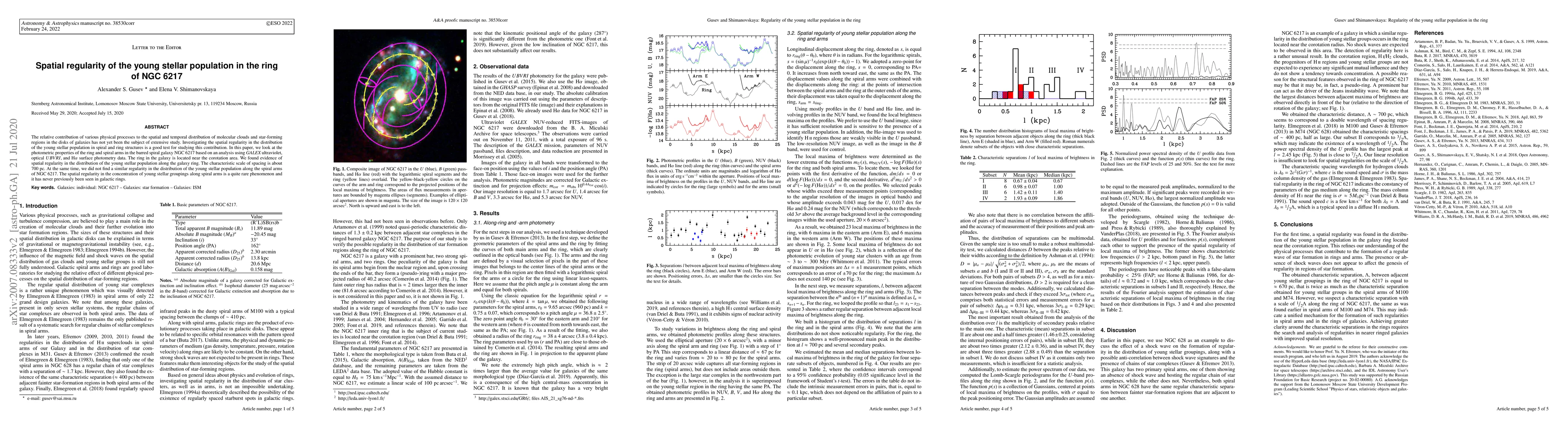 The study of galaxy NGC 6217 reveals a spatial regularity in the young stellar population along its ring structure, but not in its spiral arms, at a characteristic scale of about 700 parsecs.