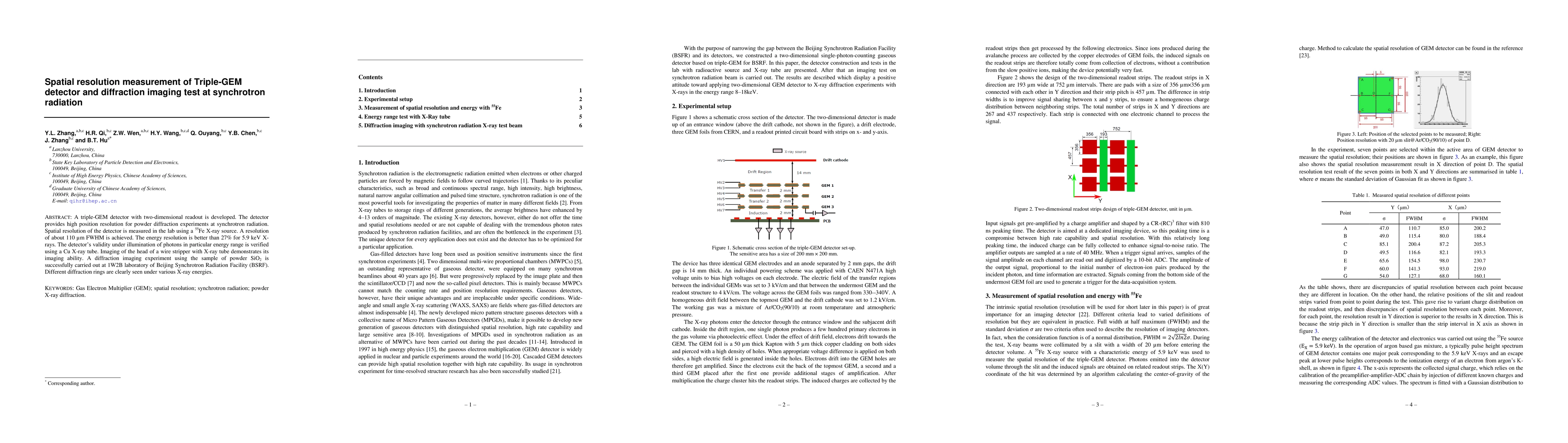 This paper develops a triple-GEM detector with high spatial resolution for synchrotron radiation experiments, achieving a resolution of 110 µm FWHM. It successfully demonstrates the detector's imaging capability and verifies its performance in diffraction imaging at the BSRF.